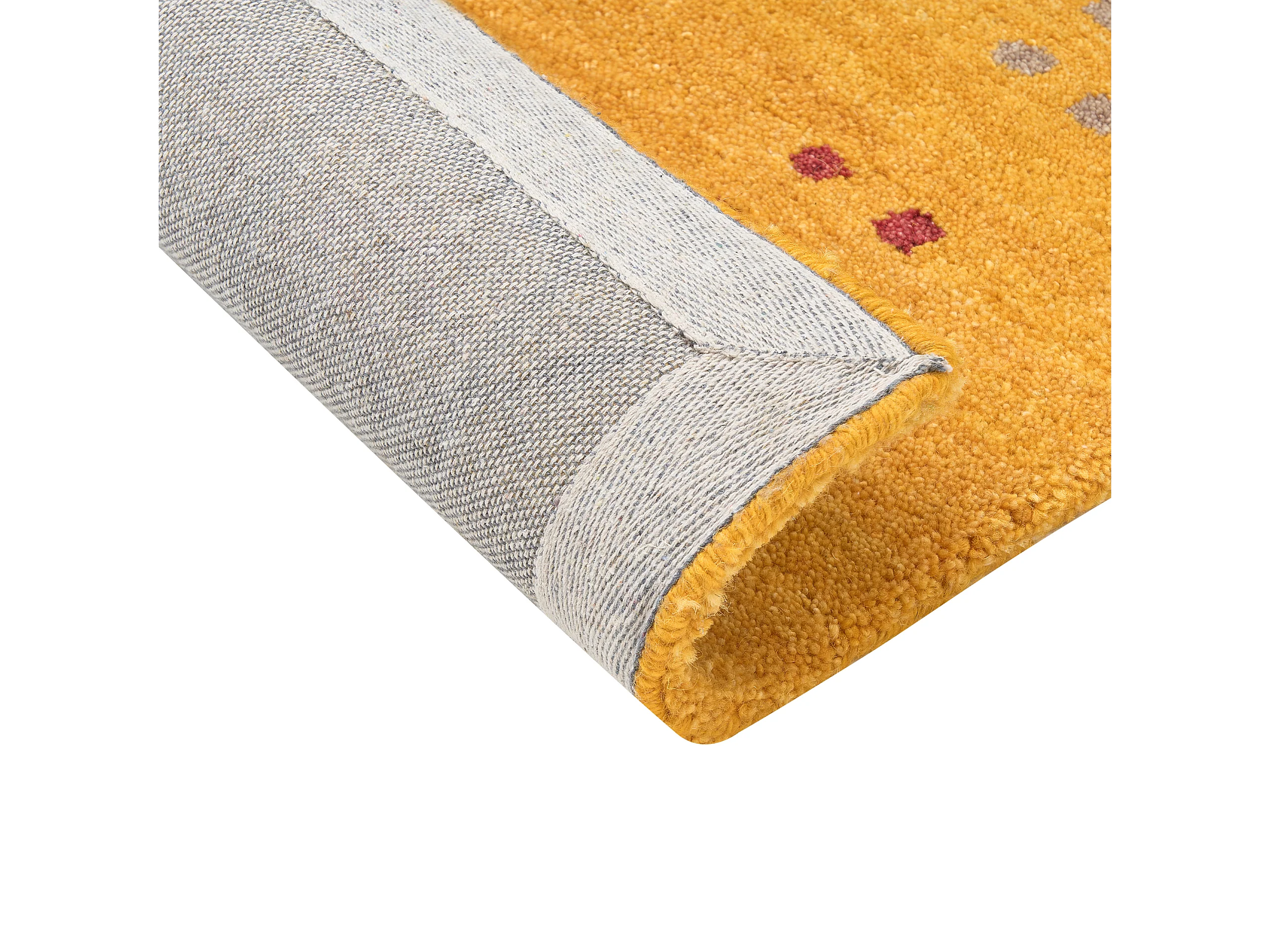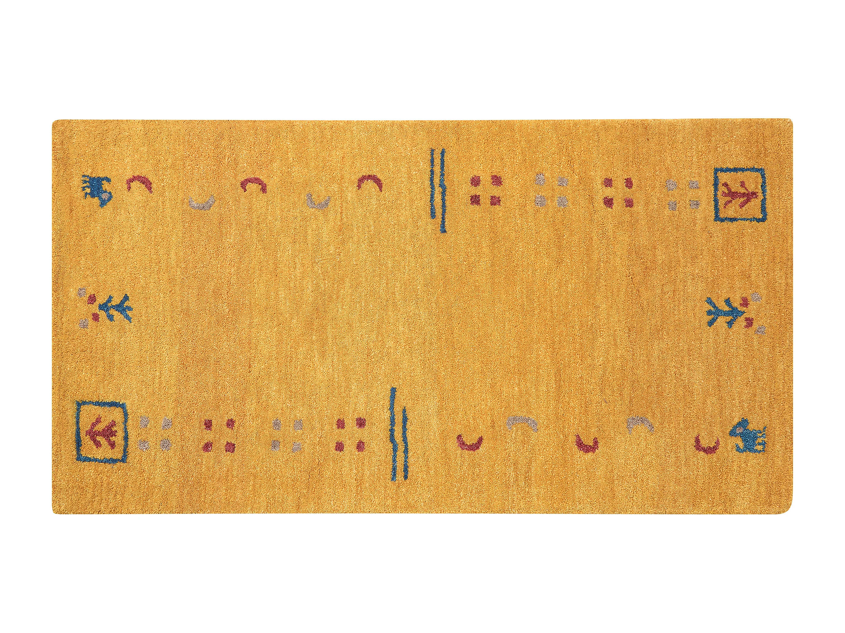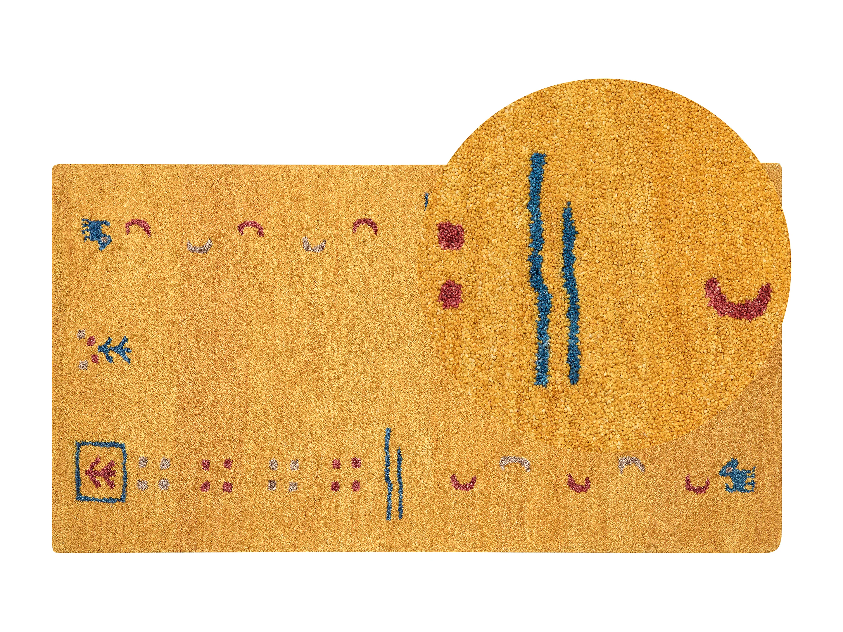 Gabbeh Teppich gelb aus Wolle 80 x 150 cm Hochflor mit Muster weich handgetuftet Akalan