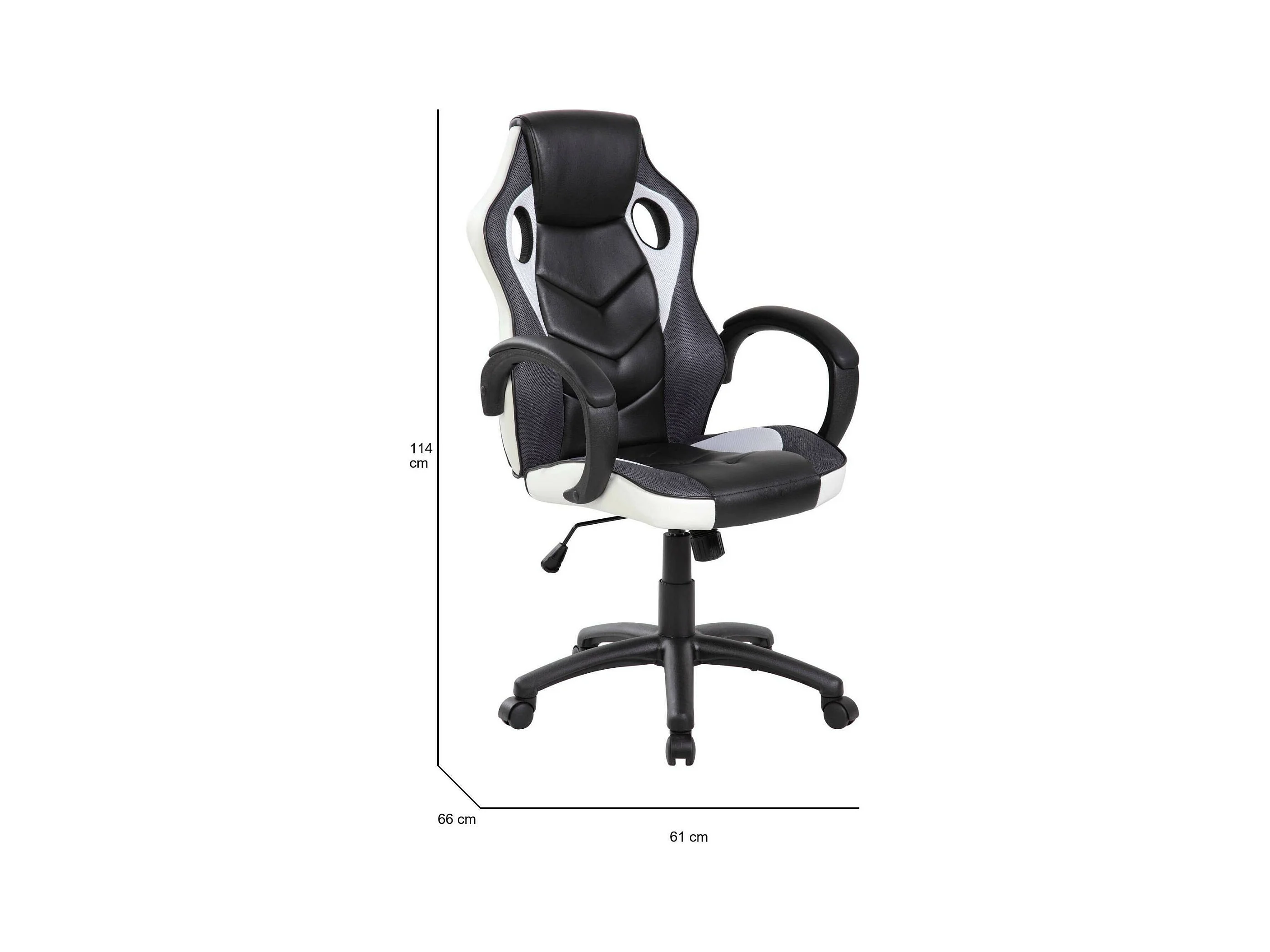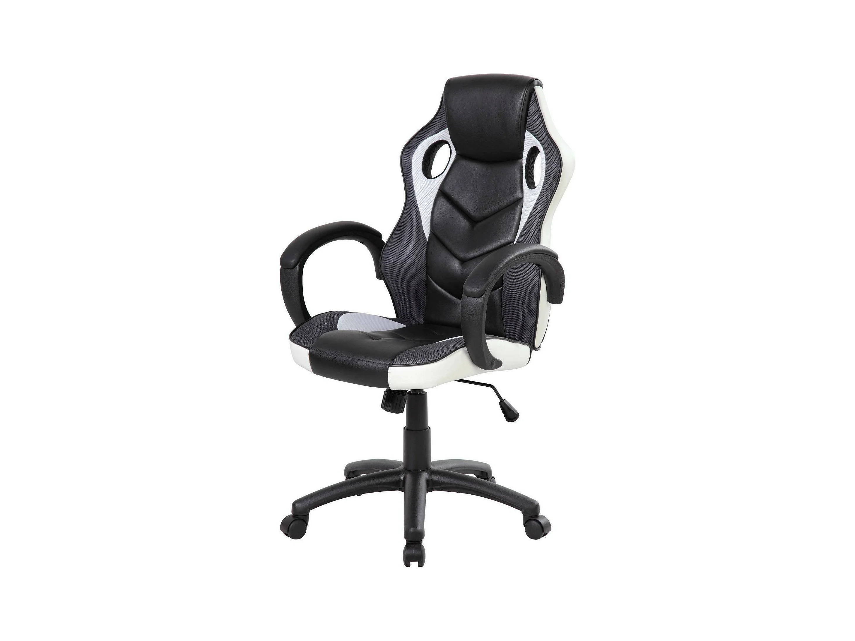 Gaming-Stühl Caloundra, Gaming-Sessel für Erwachsene, Schreibtischstuhl, 66x61h104/114 cm, Schwarz und Weiß