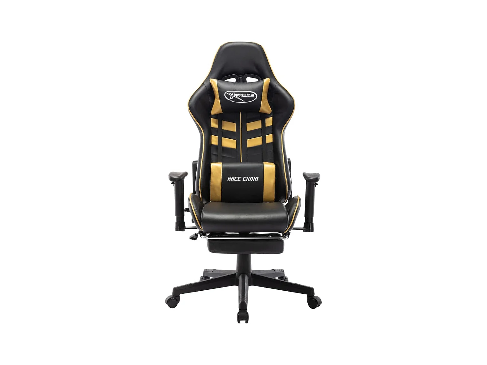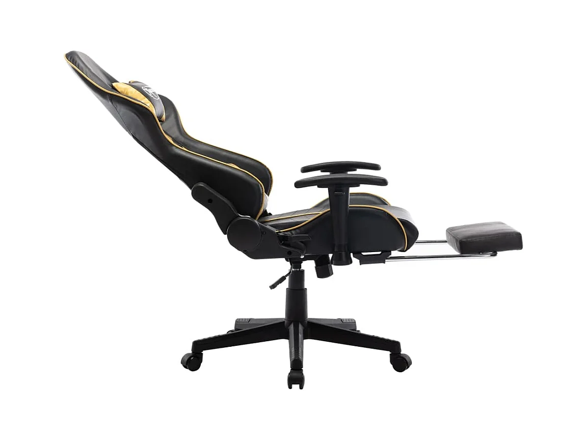 Gaming-Stuhl mit Fußstütze Schwarz und Golden Kunstleder