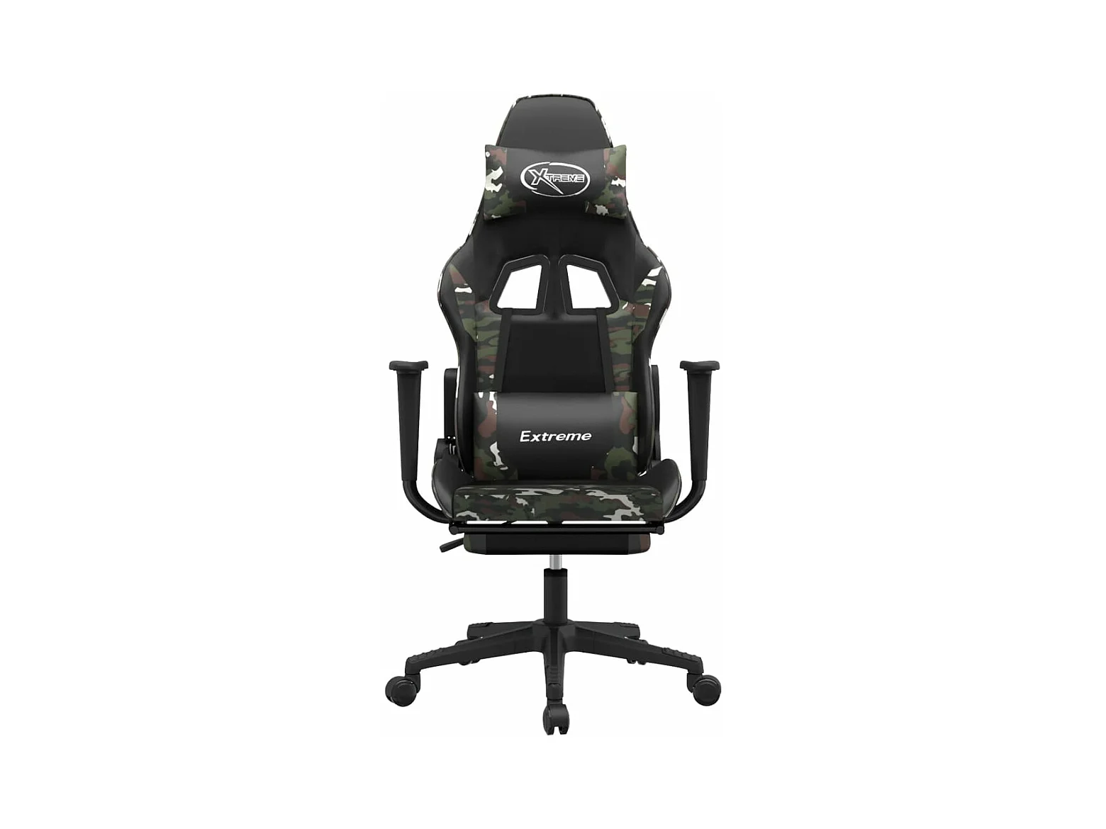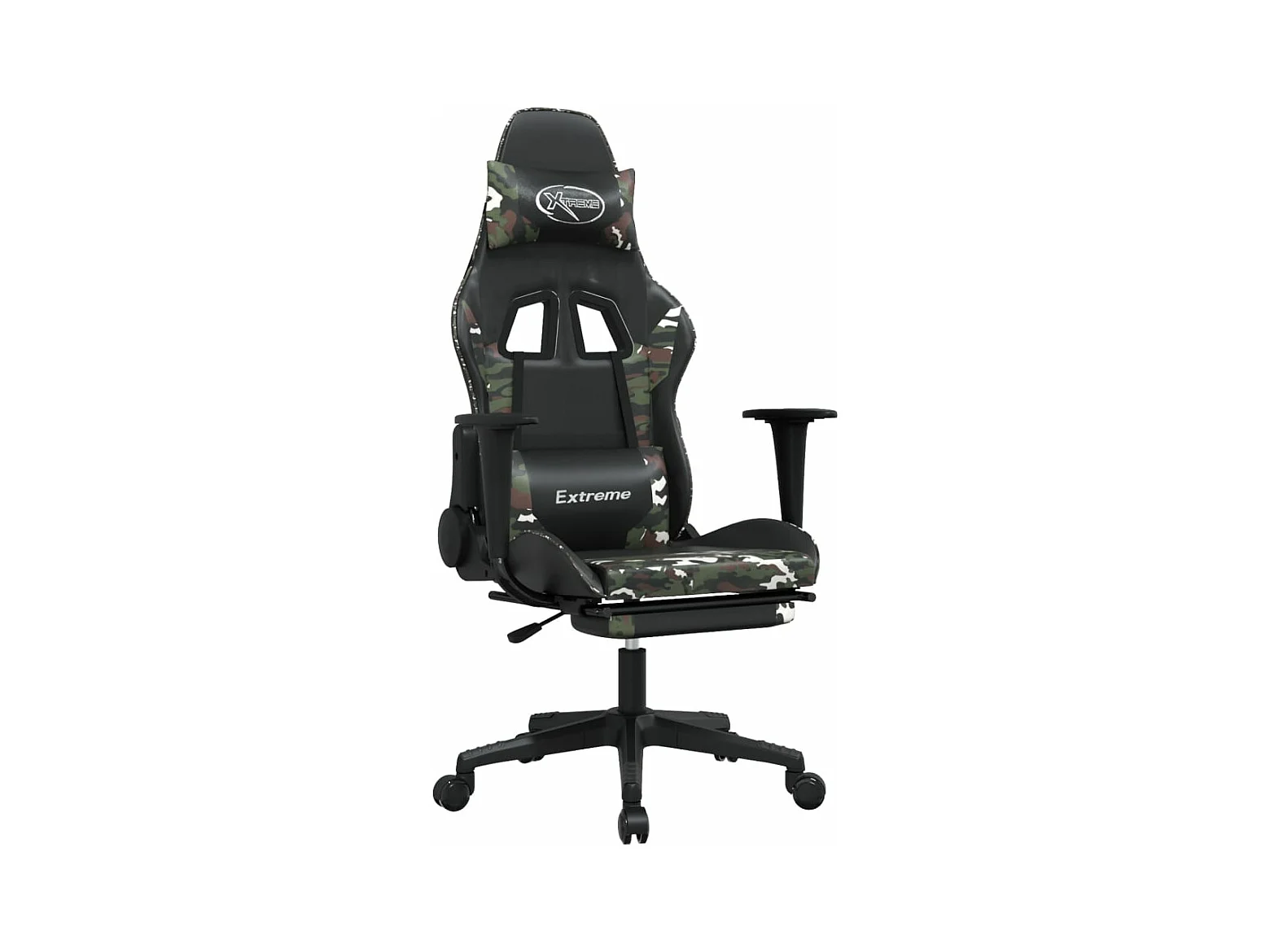 Gaming-Stuhl mit Fußstütze. Schwarzes und tarnfarbenes Kunstleder