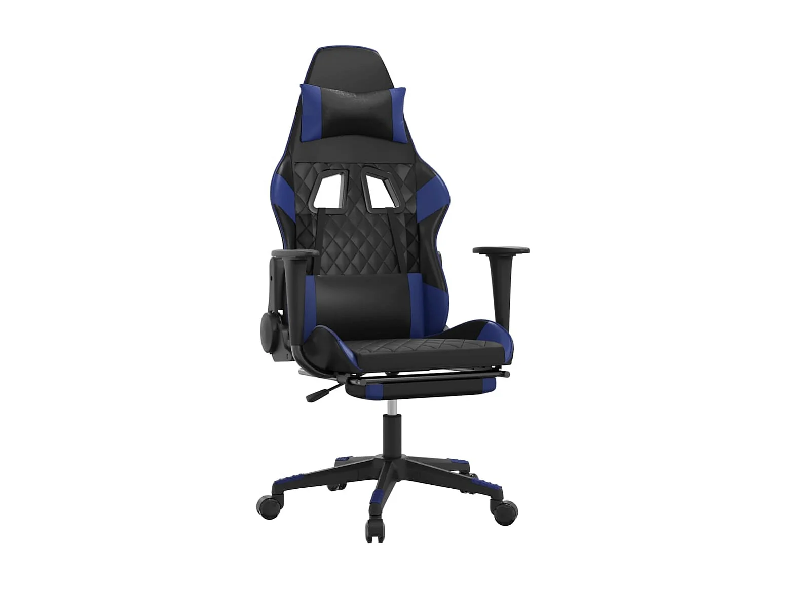 Gaming-Stuhl mit Massage & Fußstütze Schwarz & Blau Kunstleder