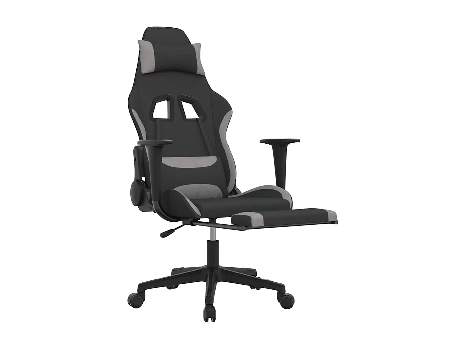 Gaming-Stuhl mit Massage & Fußstütze Schwarz und Hellgrau Stoff