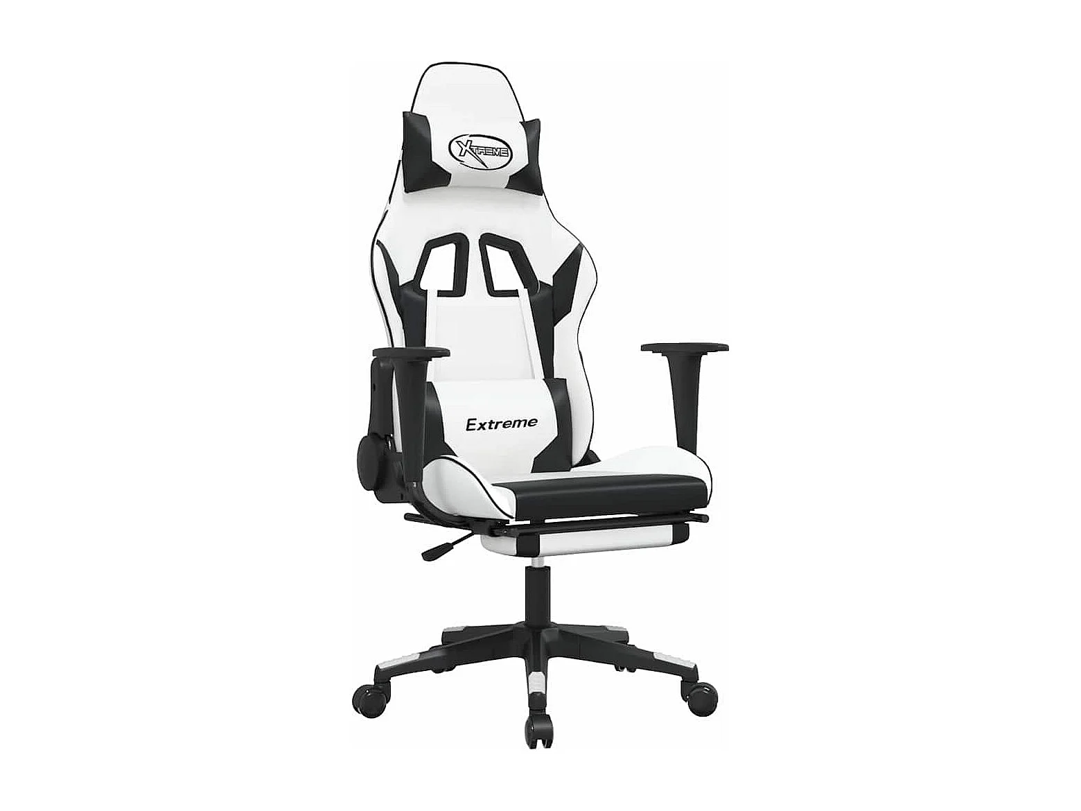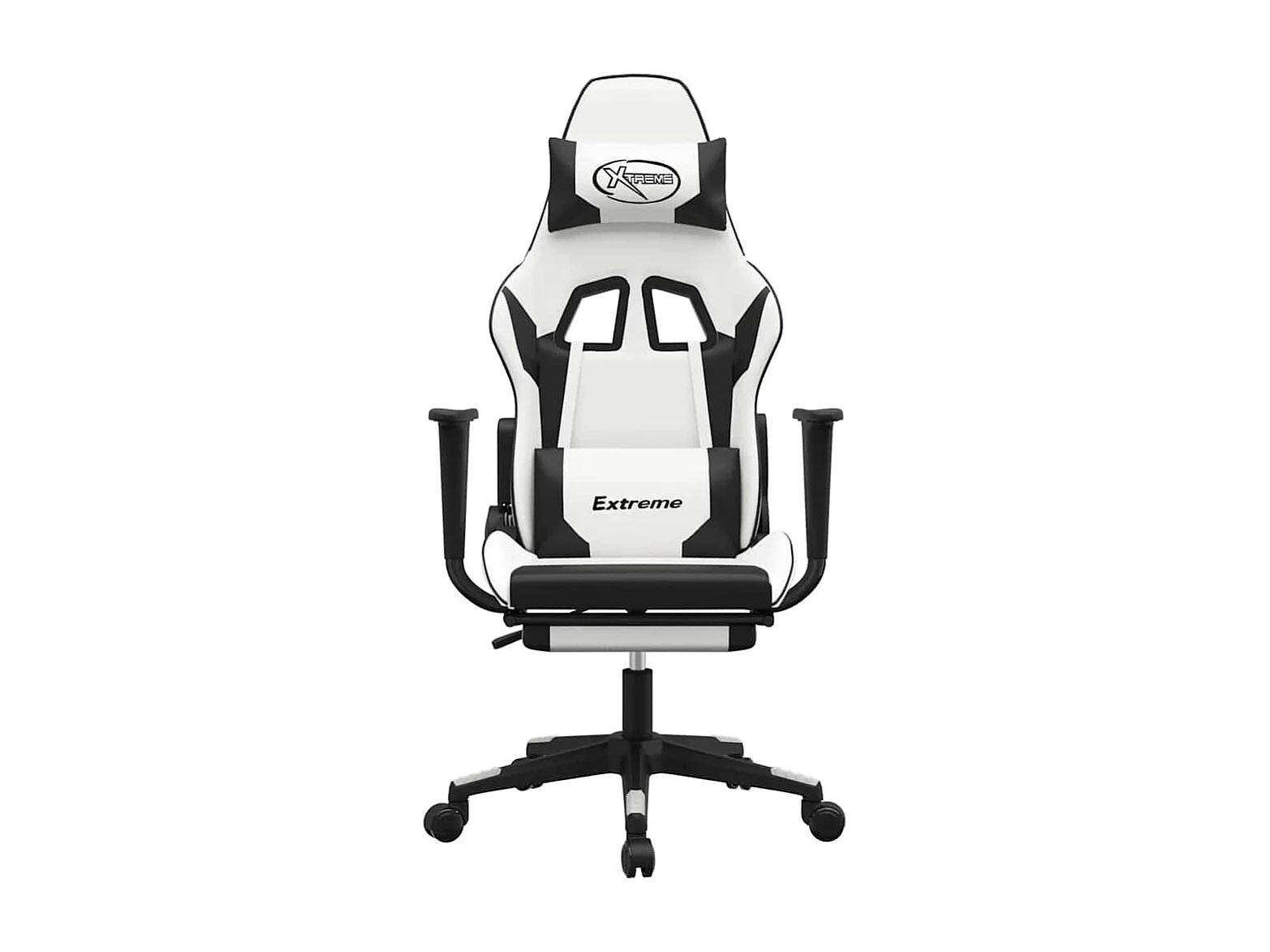 Gaming-Stuhl mit Massage & Fußstütze Weiß & Schwarz Kunstleder