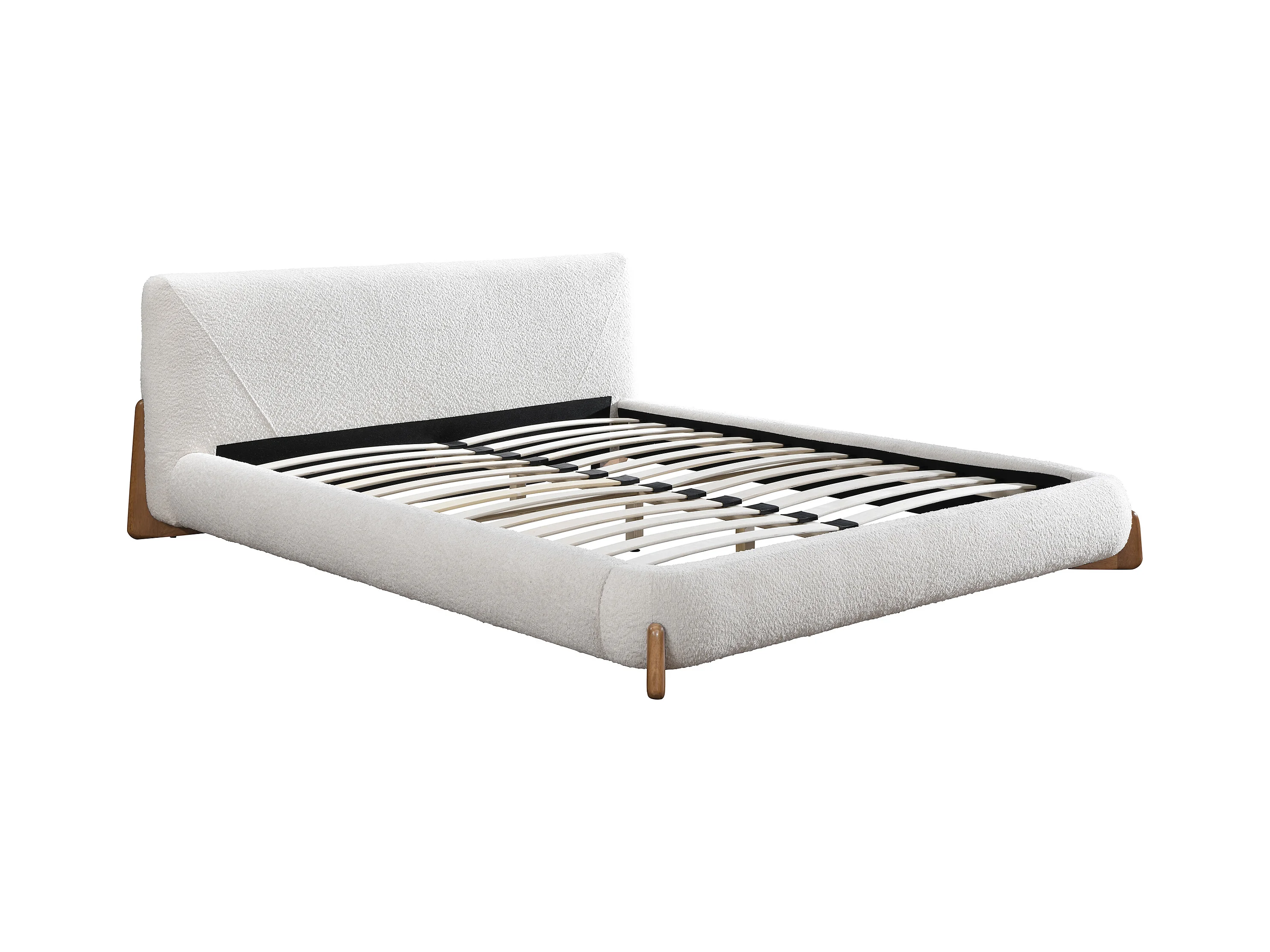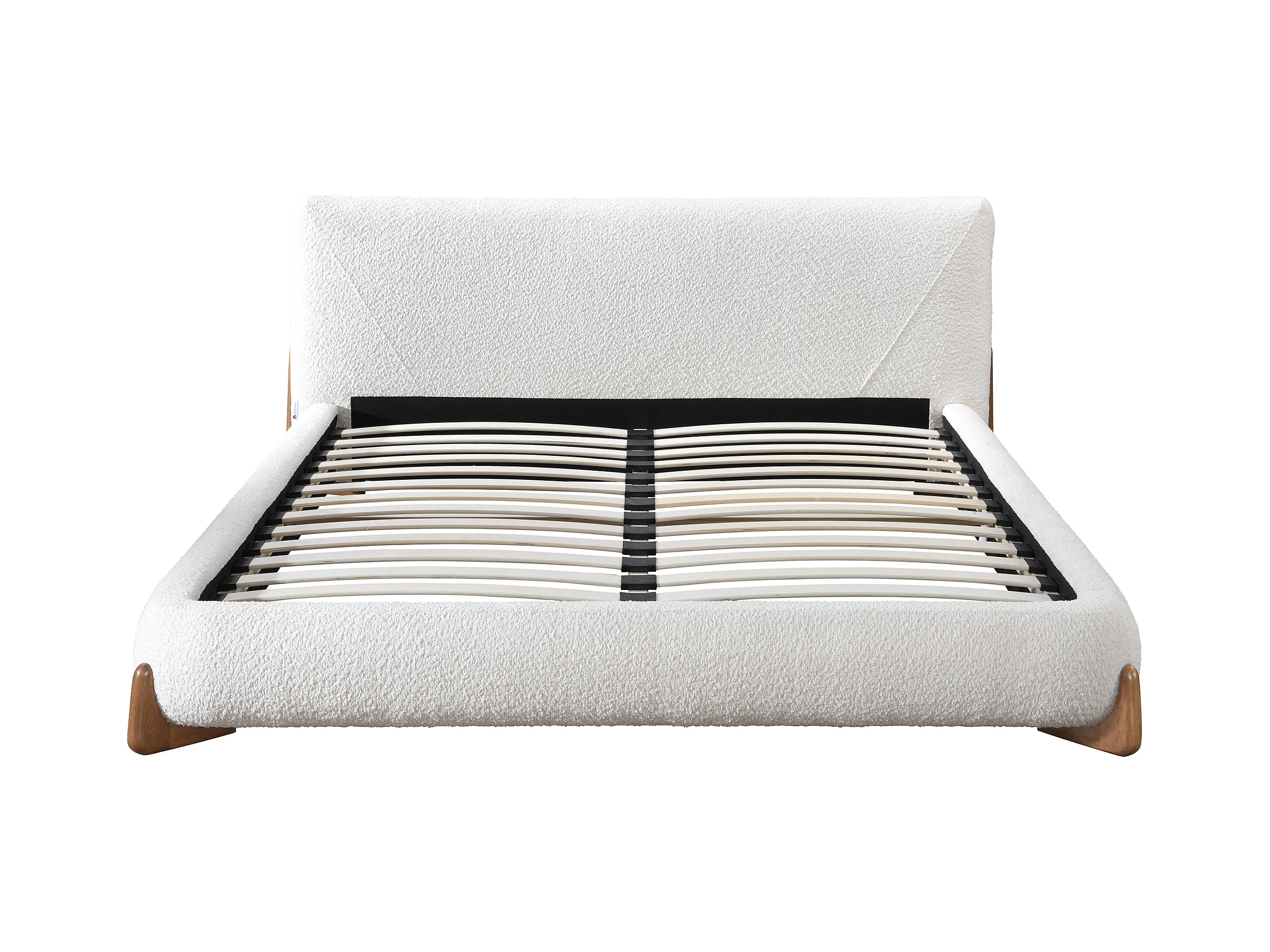 Bett + Matratze - 160 x 200 cm - Bouclé-Stoff - Weiß & Holzfarben - GAMURA