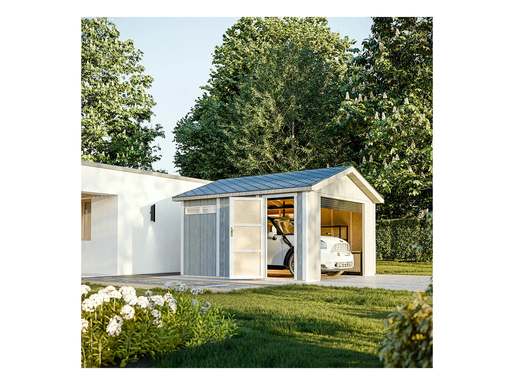 Garage PREMIUM QUALITÄT 13 m²- L378xB412 cm- Garage für Motorräder, Fahrräder, Gartengeräte - Konstruktion aus LP Smartside-Panels - Gartenhaus Timbela M990B