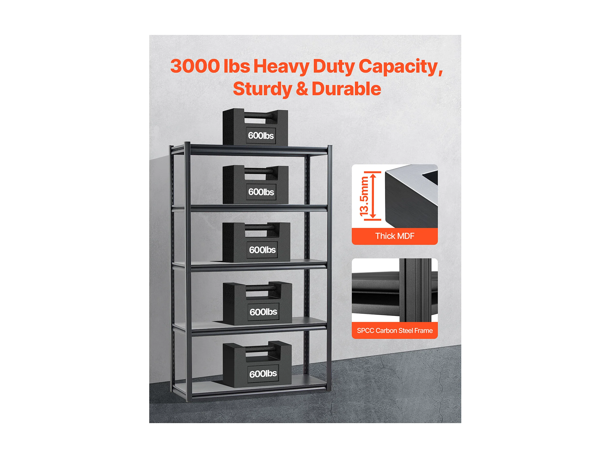 Garagenregale aus Metall SucceBuy 5-Stöckiges Garagenregal, 46 cm T x 122 cm B x 198 cm H