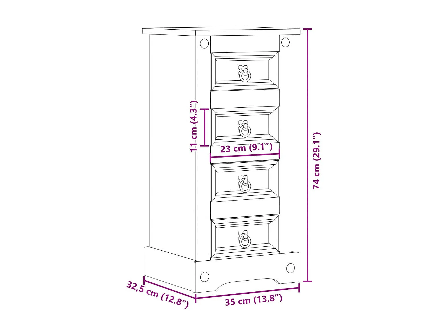 Garden Furniture - Nachttisch Corona 35x32,5x74 cm Massivholz Kiefer