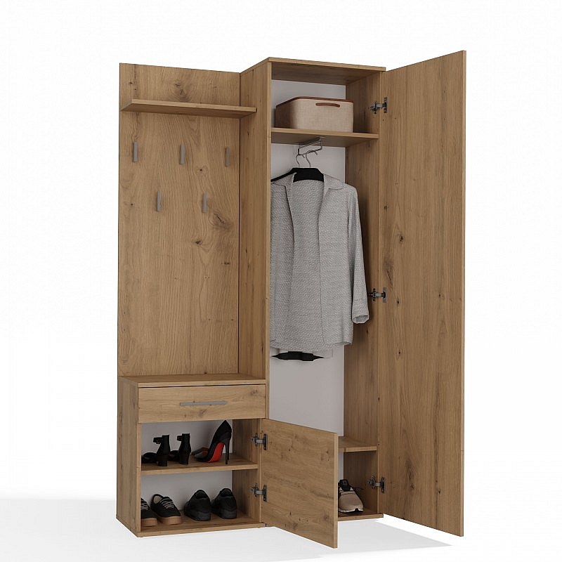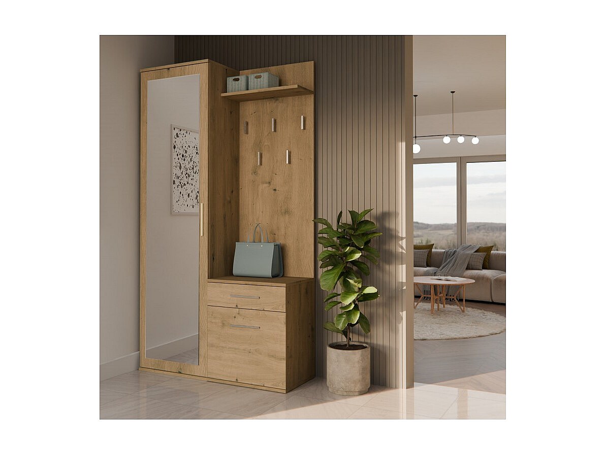 Garderoba Duo | Artisan | 100x35x180 cm | Szafa, Lustro, Wieszak, Szuflada, Szafka
