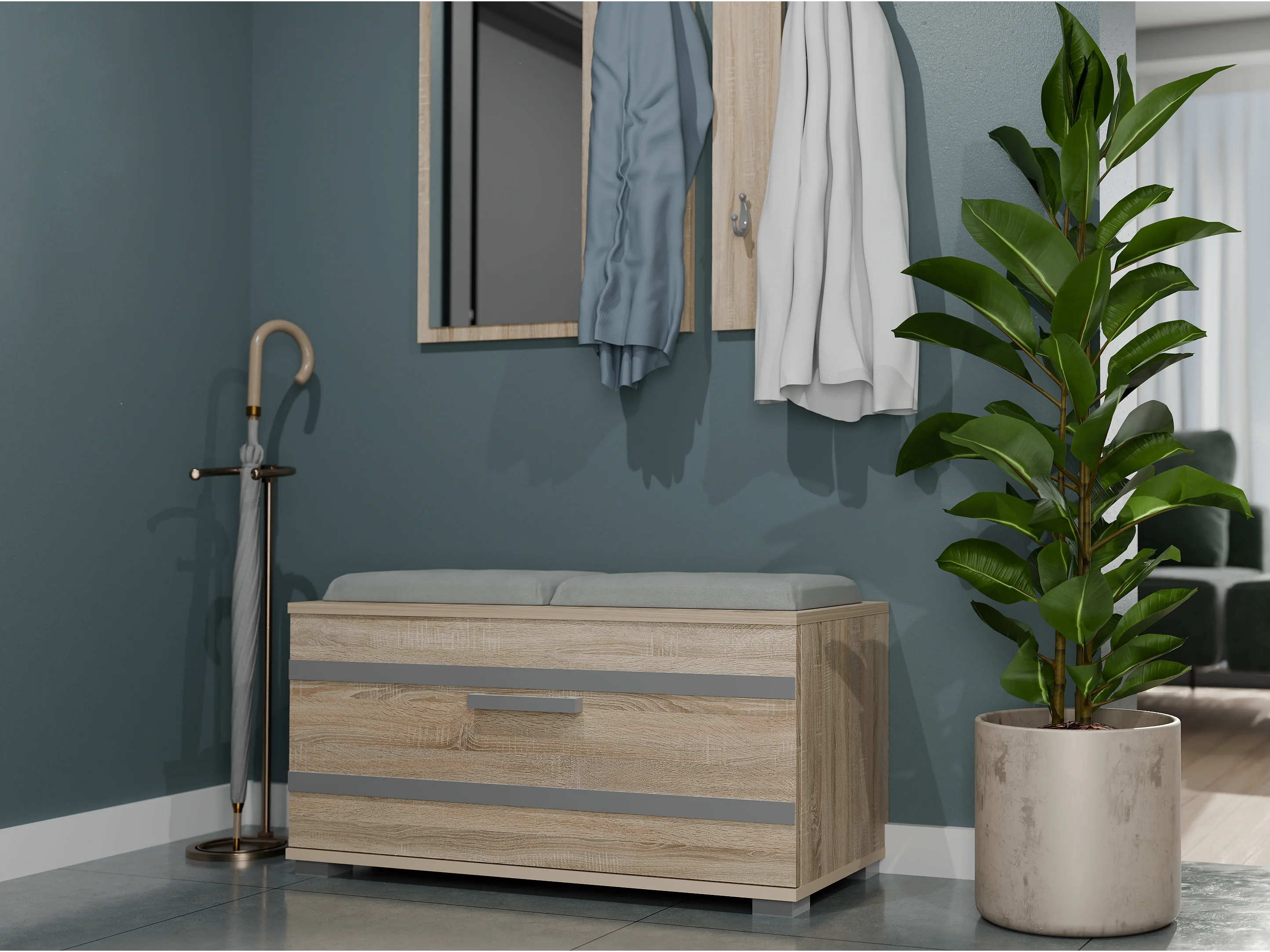 Garderoba Opal | Dąb Sonoma | 85x35x180 | Wieszak + Lustro + Szafka