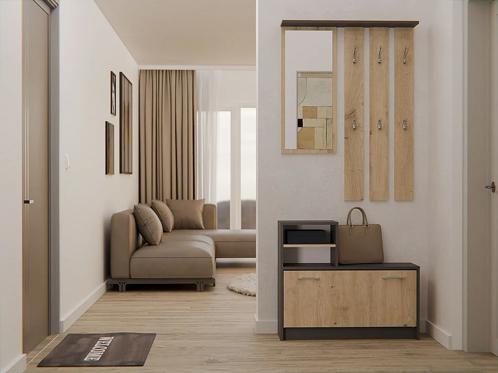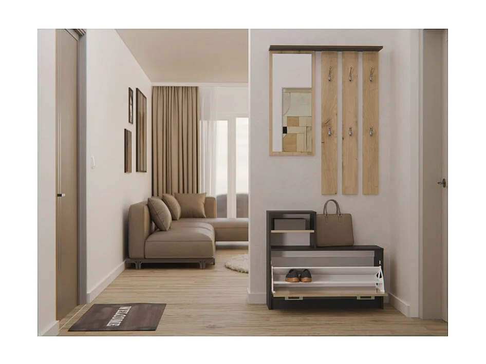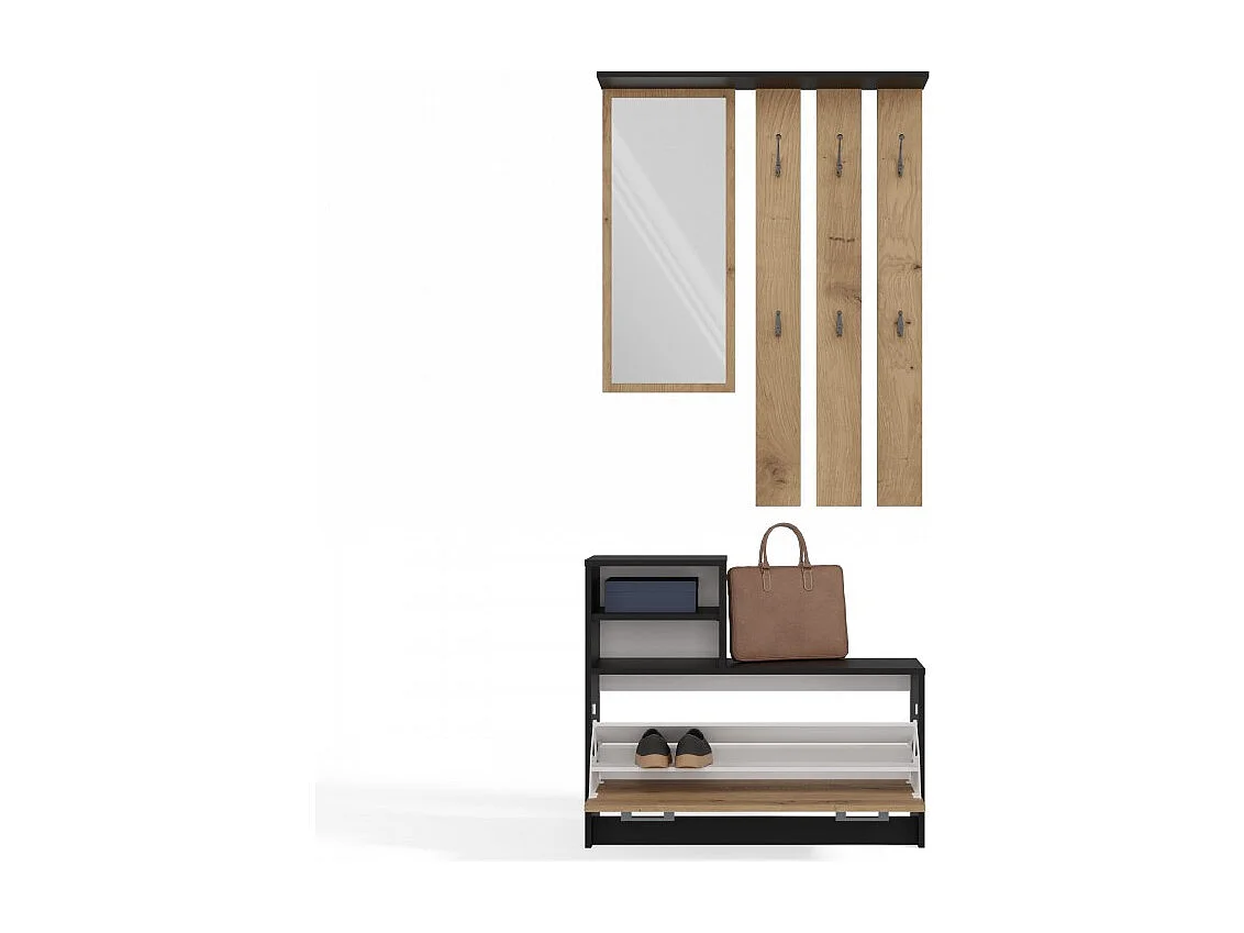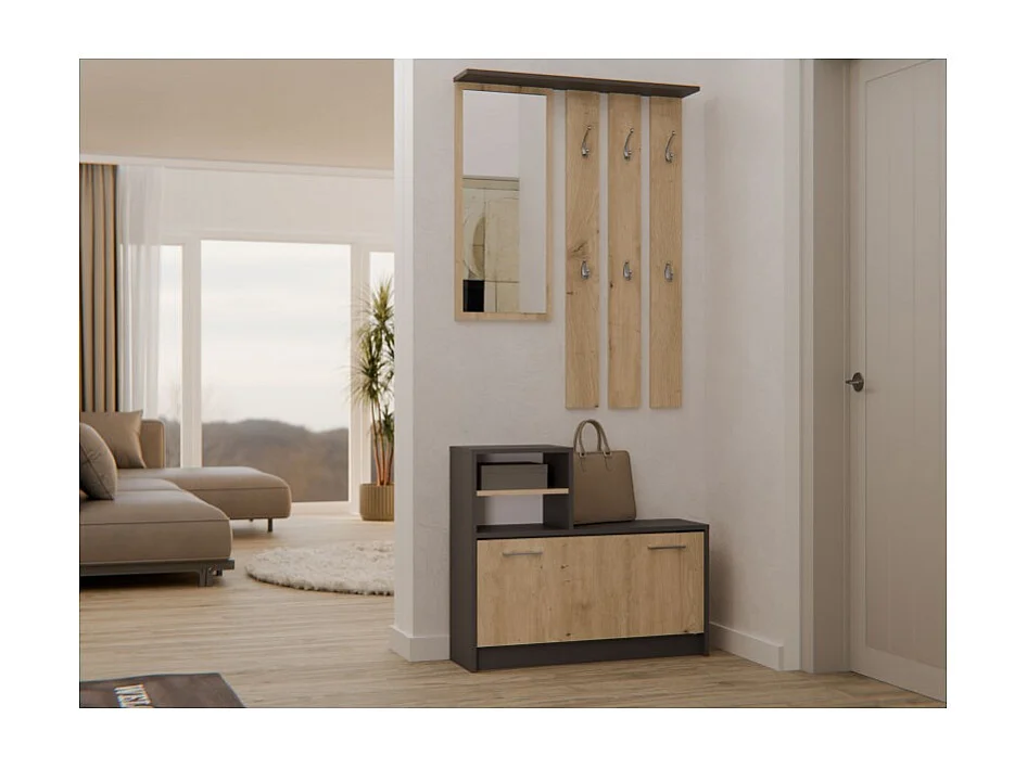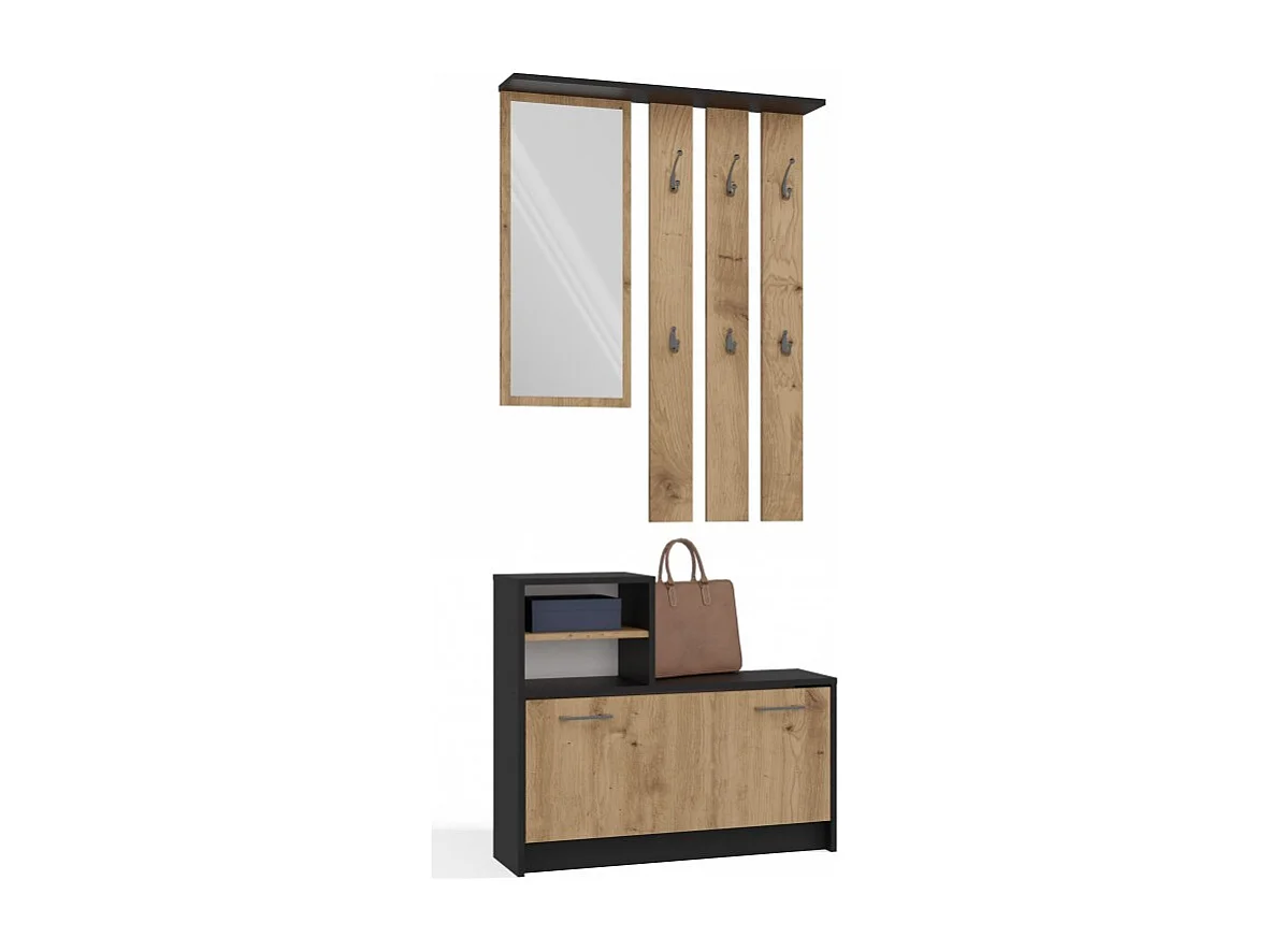 Garderoba Vera | Antracyt/Dąb Artisan| 85x24x180 cm| Wieszak, Lustro, Szafka na Obuwie