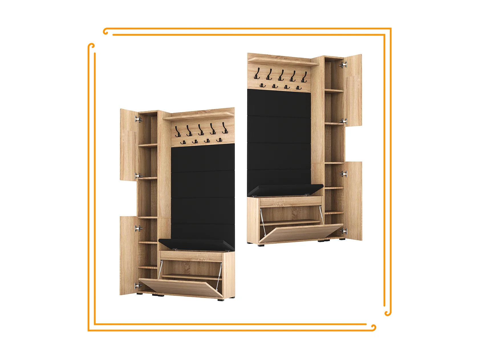 Garderobe für den Flur mit Sitzbank, Kleiderhaken, Polsterpaneel, Weiß