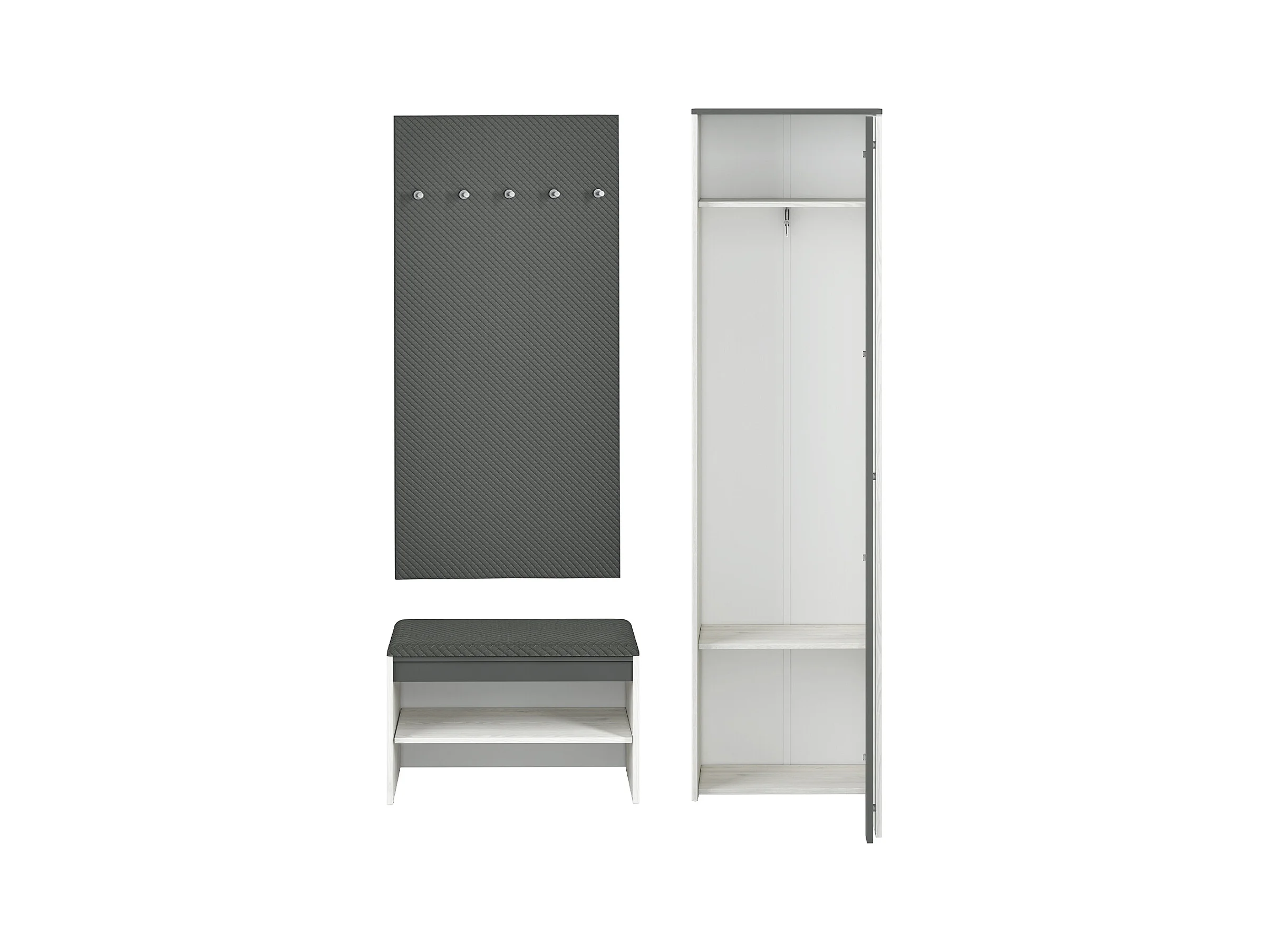 GARDEROBE Hyga Pinie weiß / anthrazit 3-teilig