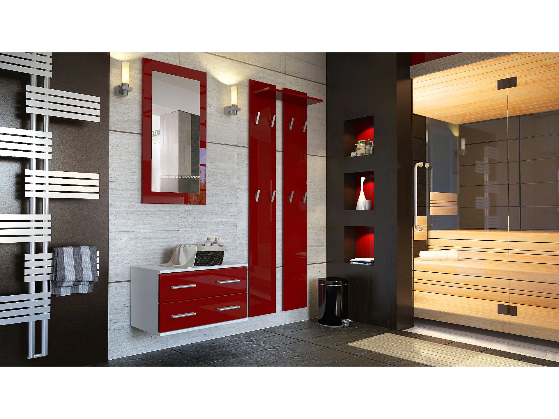 GARDEROBE Kioto Front in Bordeaux Hochglanz