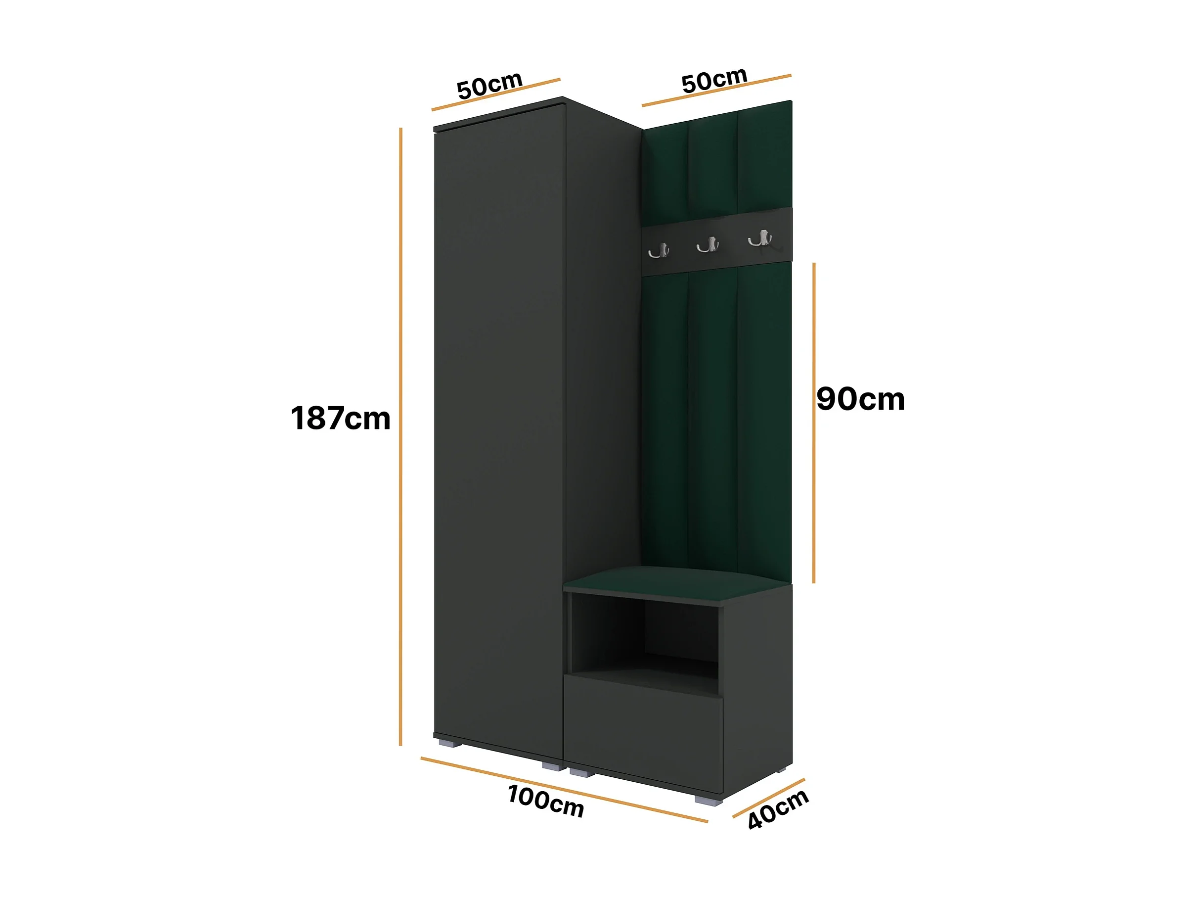 Garderobe Nela I LUX - 100 cm - Graphit - Trinity 28 - Flaschengrün