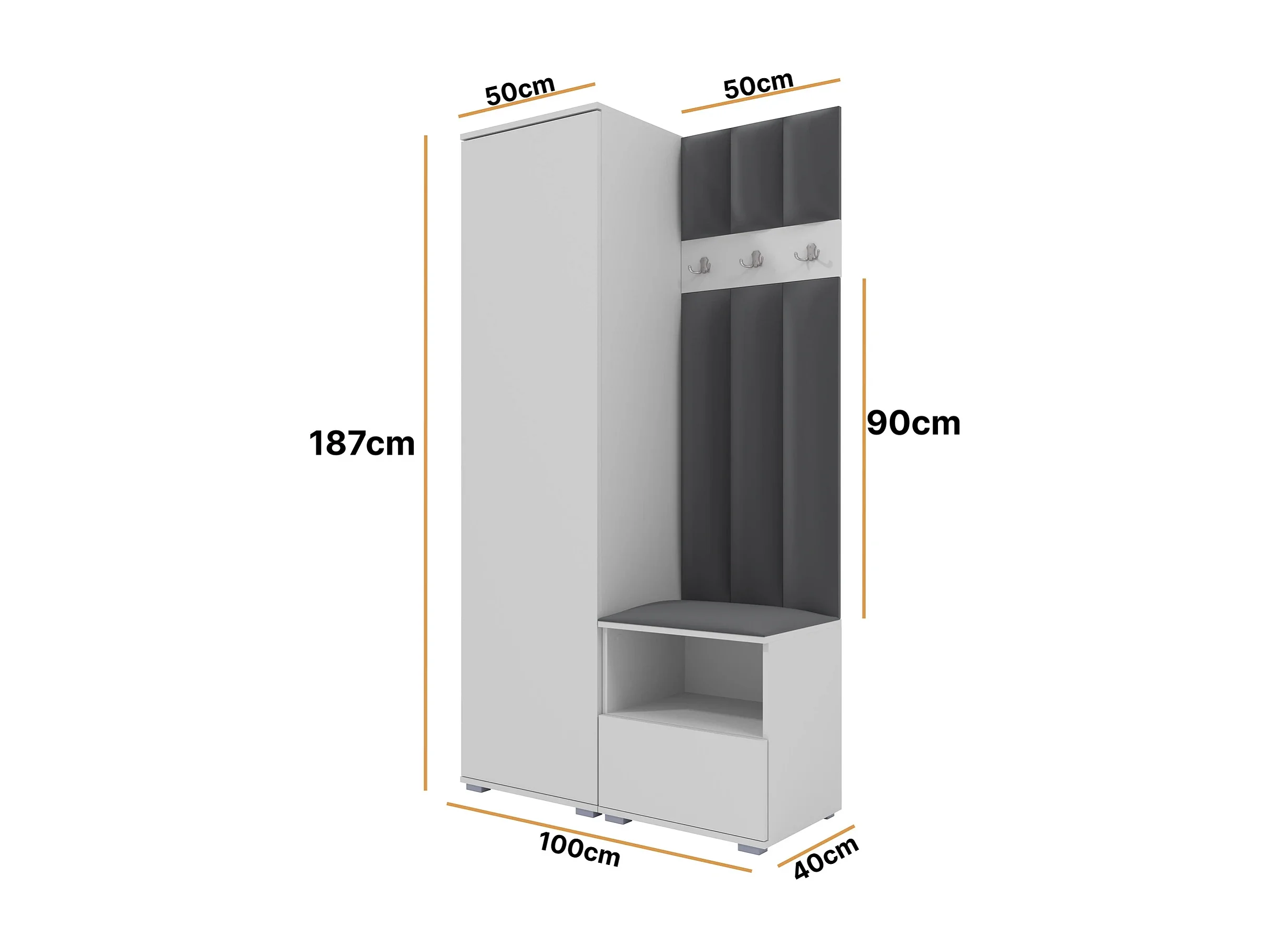 Garderobe Nela I LUX - 100 cm - Matt Weiß - Trinity 15 - Dunkelgrau