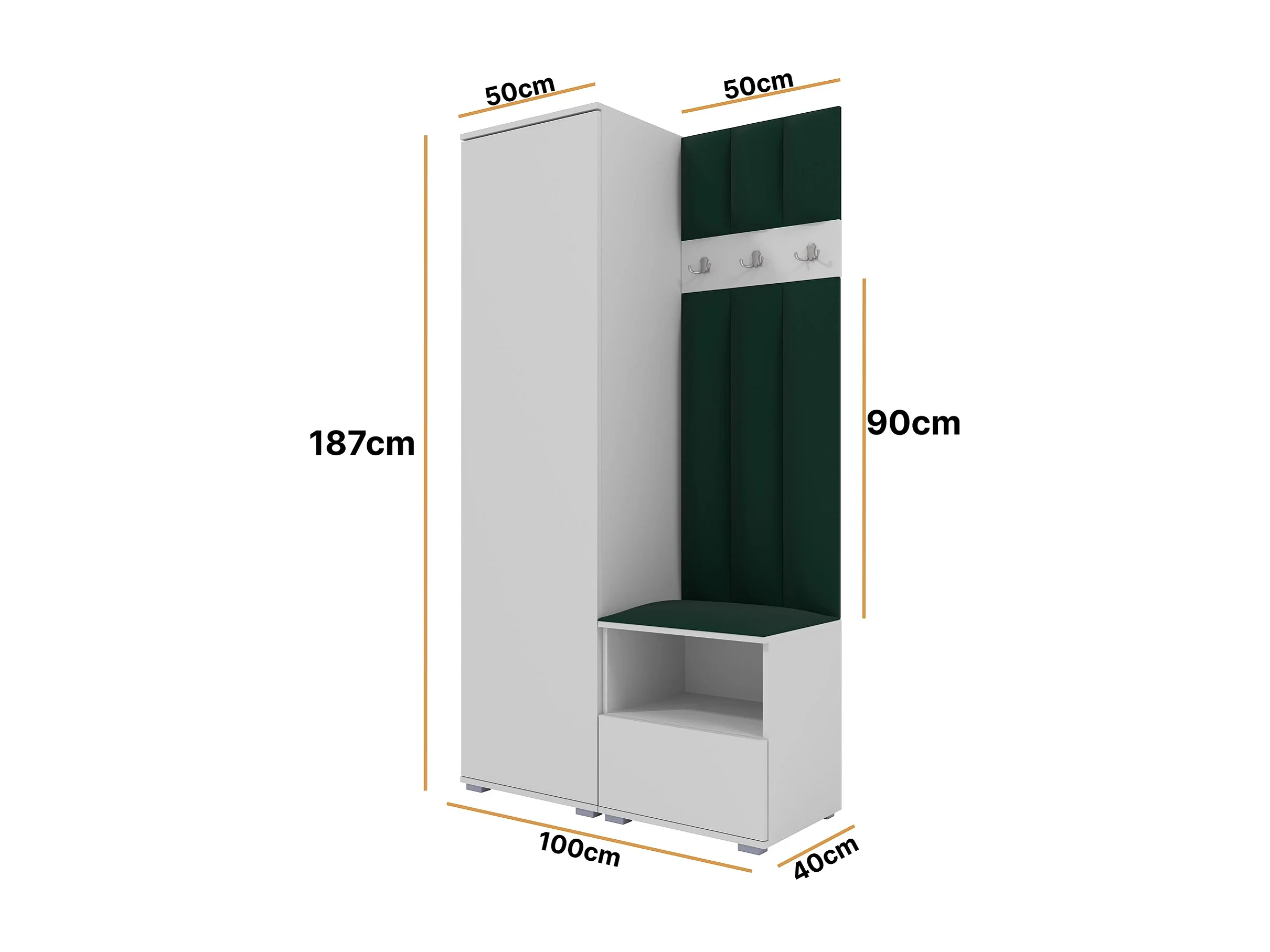 Garderobe Nela I LUX - 100 cm - Matt Weiß - Trinity 28 - Flaschengrün