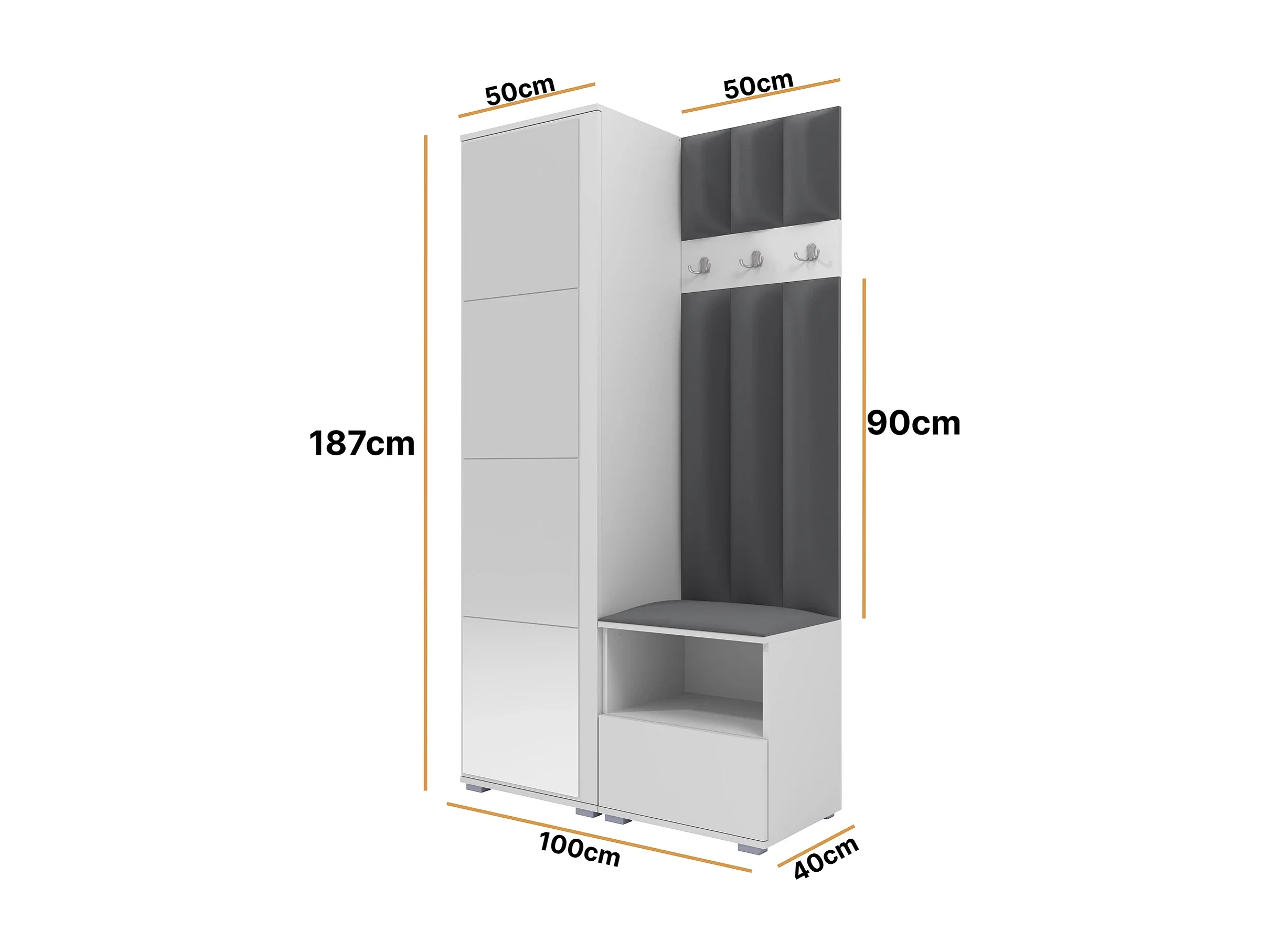 Garderobe Nela I LUX mit Spiegel - 100 cm - Matt Weiß - Trinity 15 - Dunkelgrau