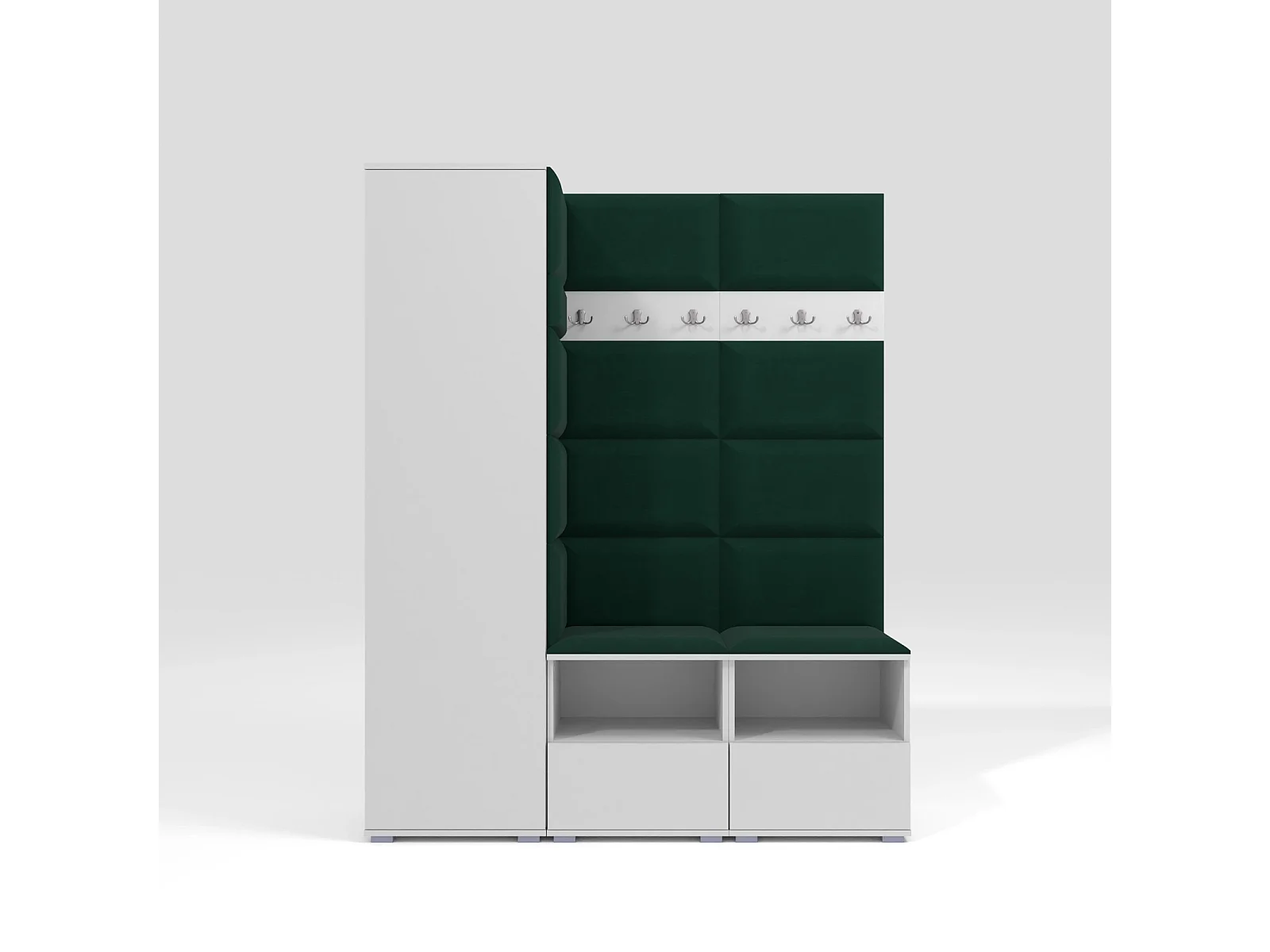Garderobe Nela II - 150 cm - Matt Weiß - Trinity 28 - Flaschengrün