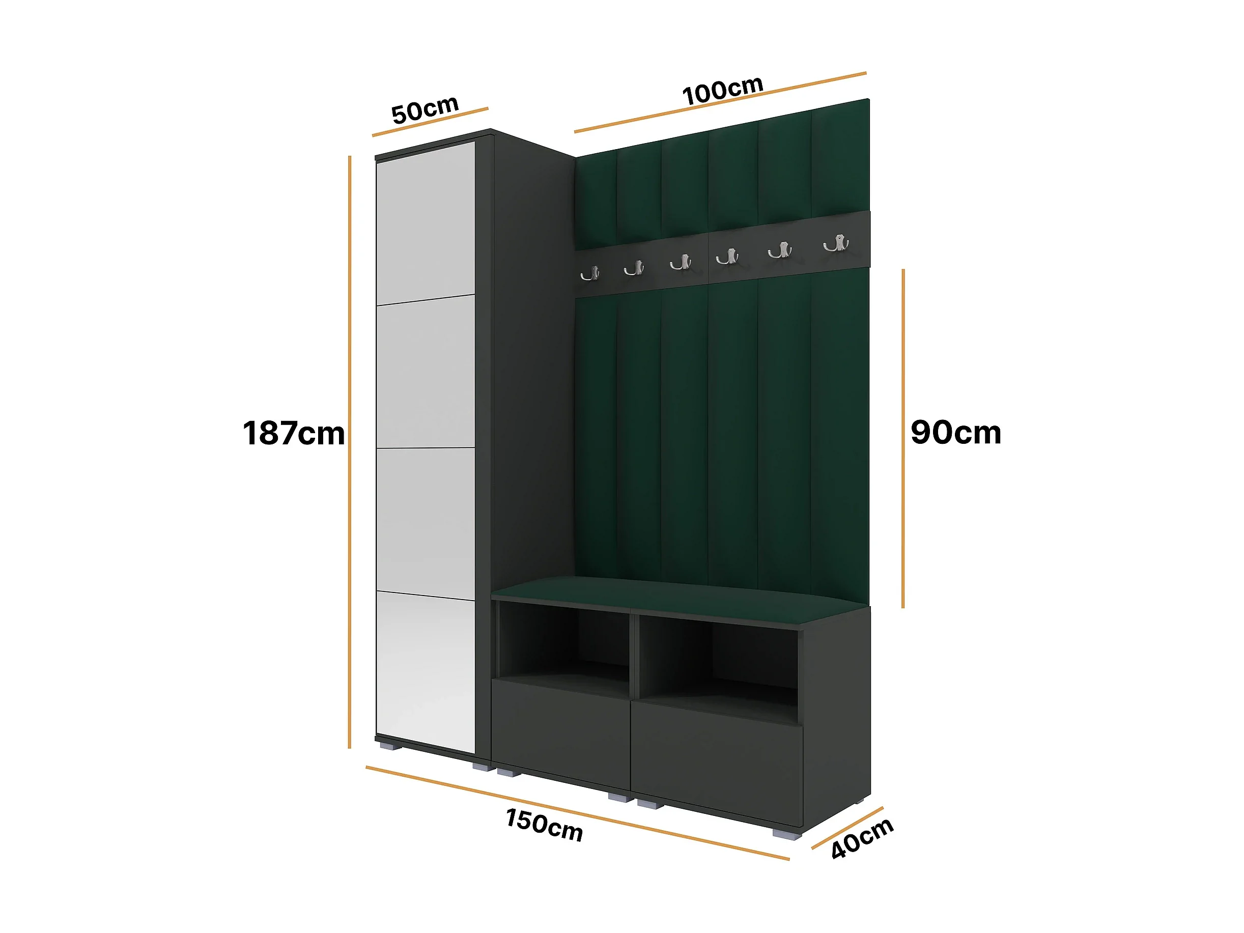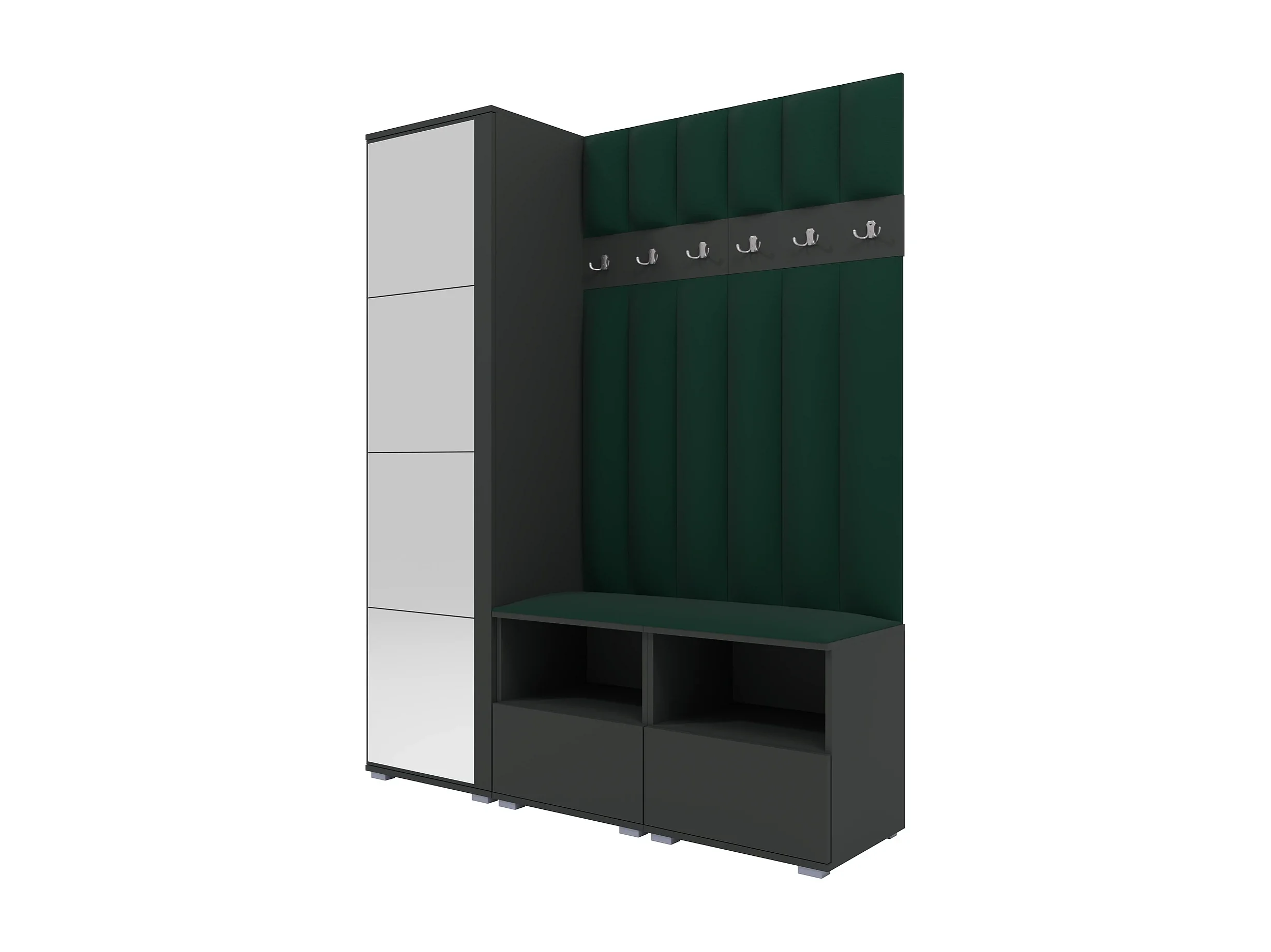 Garderobe Nela II LUX mit Spiegel - 150 cm - Graphit - Trinity 28 - Flaschengrün