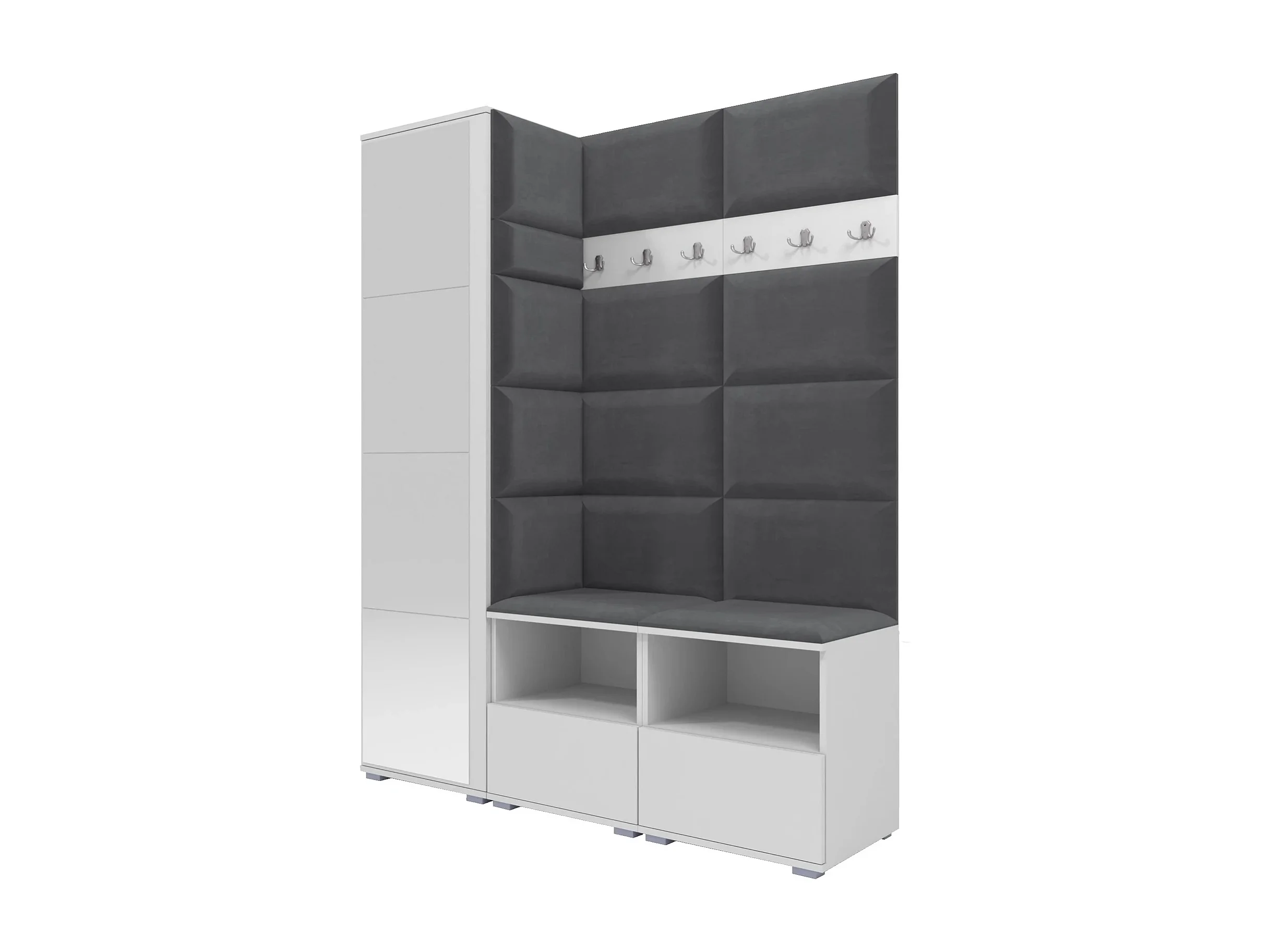 Garderobe Nela II mit Spiegel - 150 cm - Matt Weiß - Trinity 15 - Dunkelgrau