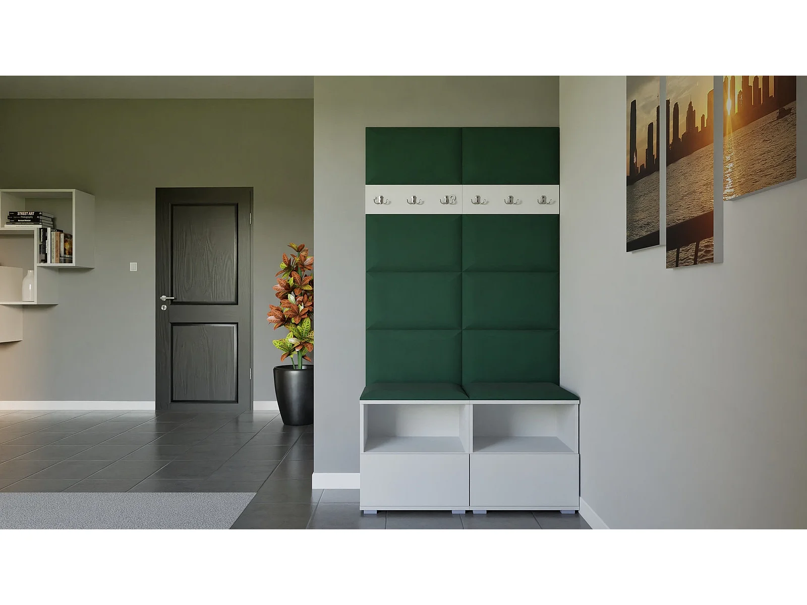 Garderobe Nela III - 100 cm - Matt Weiß - Trinity 28 - Flaschengrün