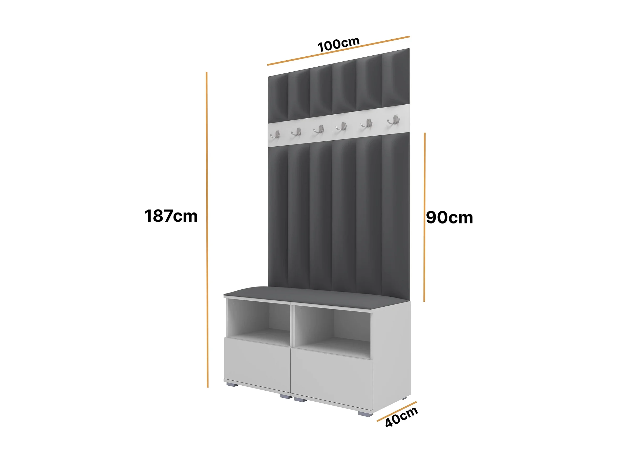 Garderobe Nela III LUX - 100 cm - Matt Weiß - Trinity 15 - Dunkelgrau