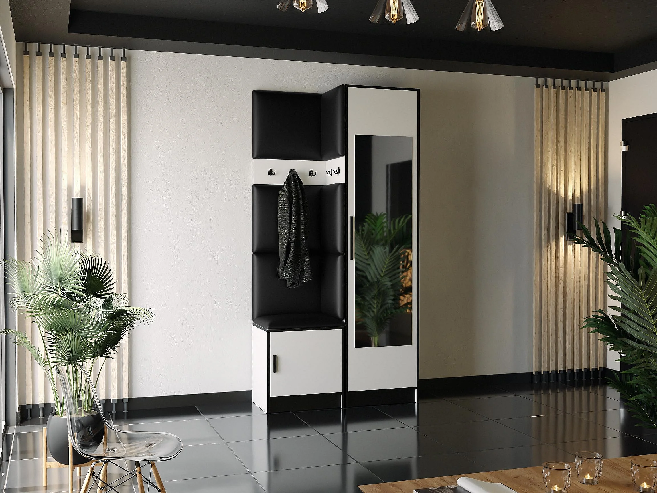 Garderobe ROJ 11 Weiß + schwarzes Kunstleder