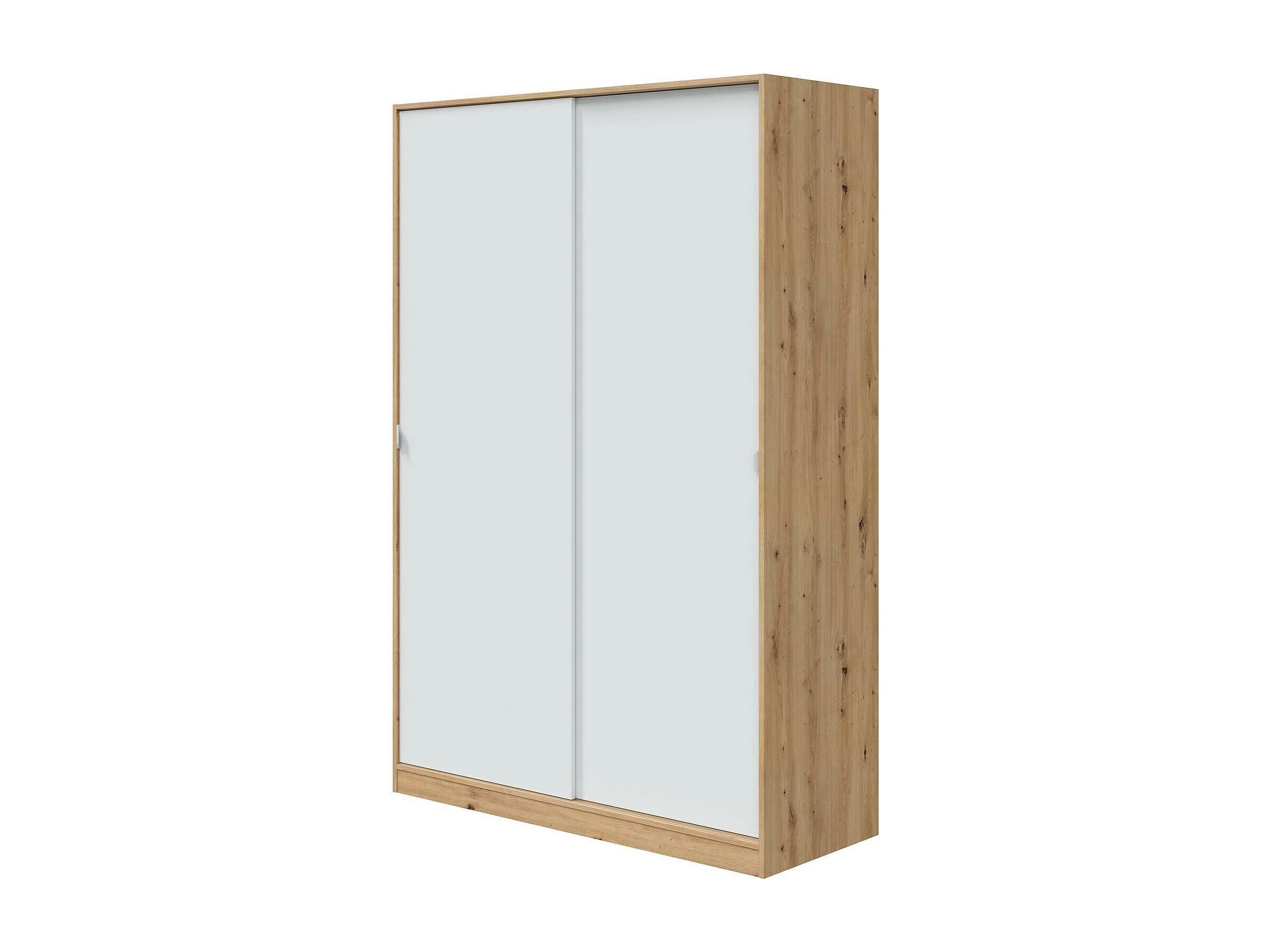 Garderobe Waterbury, Schlafzimmer Kleiderschrank mit 2 Schiebetüren, Schrank mit 3 Einlegeböden und Kleiderstange, 120x50h200 cm, Weiß und Eiche Nodi