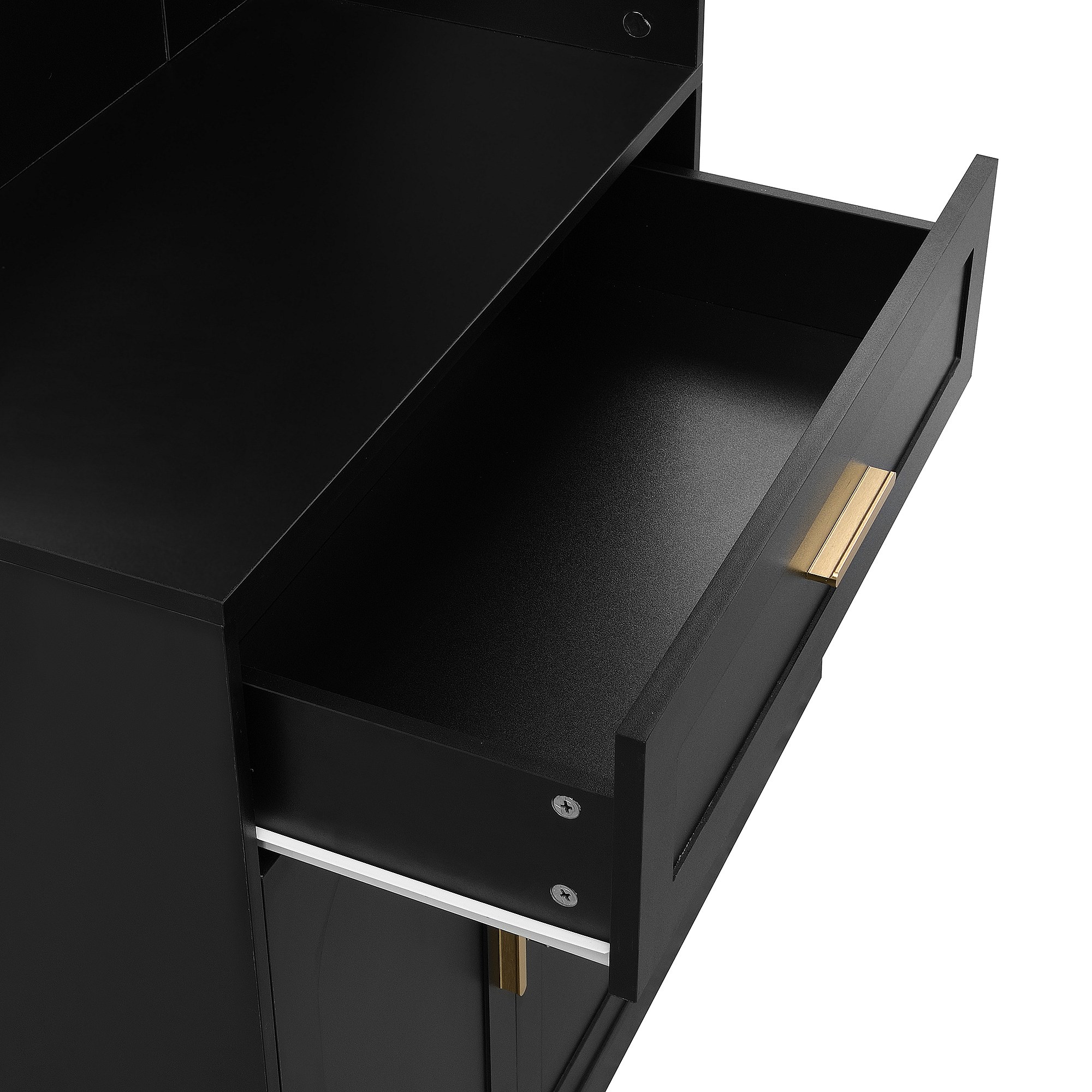 Garderoben-Set 110x33x185,5 cm - 3 Türen und 1 Schublade - Schuhschrank und Schuhbank - mit Spiegel - Schwarz