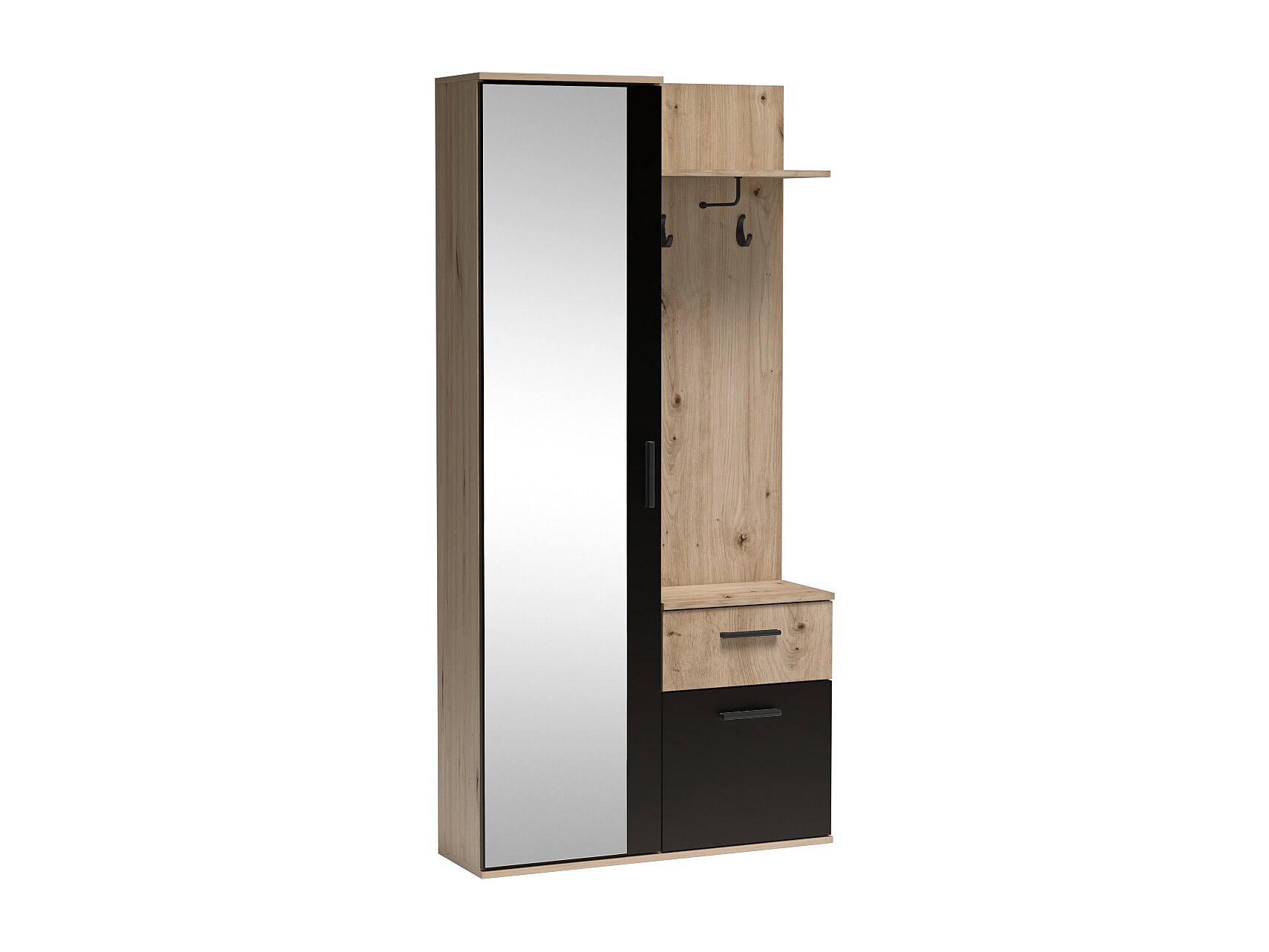 Garderoben-Set 97 cm mit Spiegel & Stauraum – Mit Haken, Schublade & Ablage – Flurgarderobe für Diele & Eingang – Artisan Eiche/Schwarz – Links oder Rechts – Nex