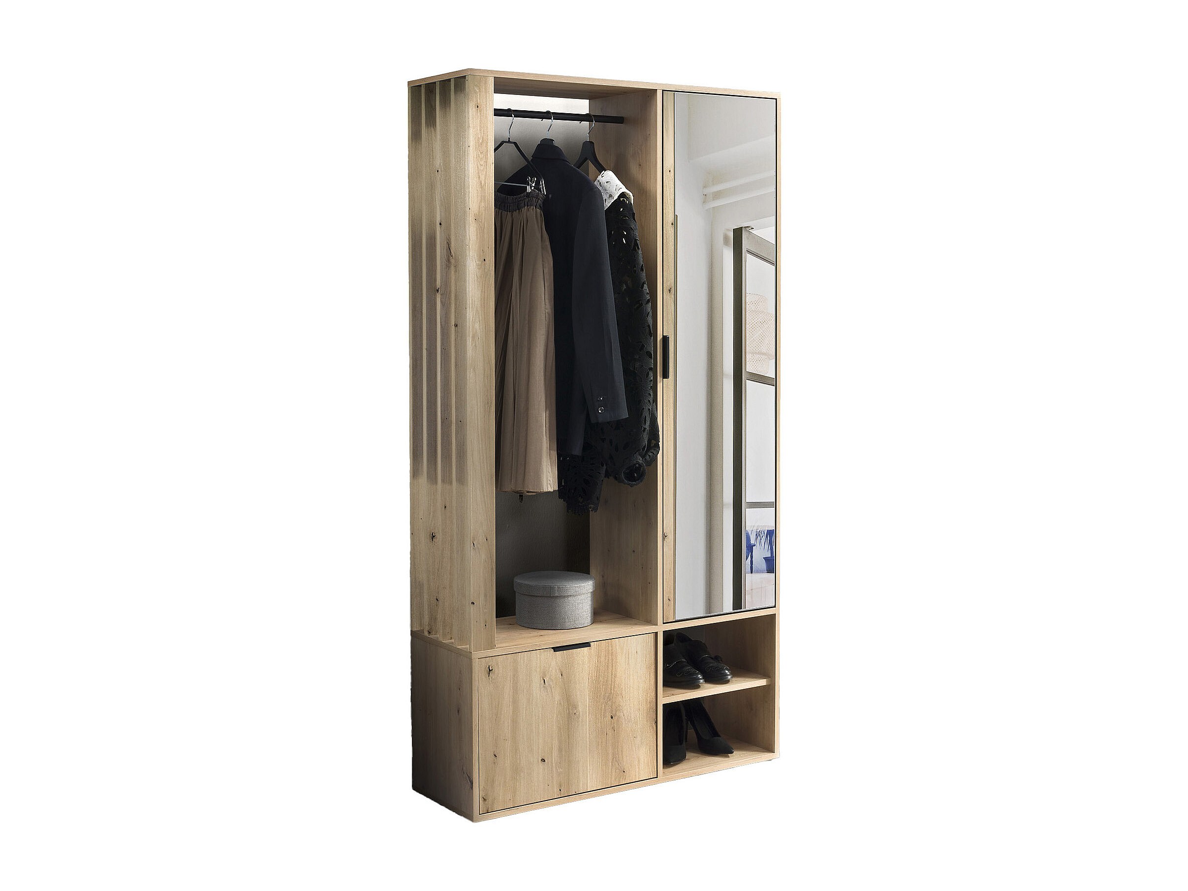 Garderoben-Set mit Spiegel & Sitzbank 100 cm – Flurgarderobe mit Kleiderstange, Ablage, Stauraum – Links oder Rechts – Artisan Eiche – Garderobenschrank Lena