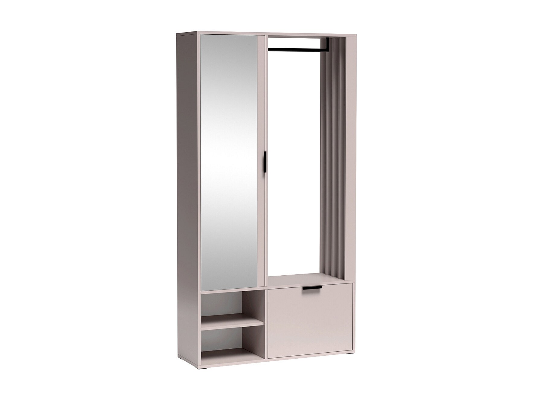 Garderoben-Set mit Spiegel & Sitzbank 100 cm – Flurgarderobe mit Kleiderstange, Ablage, Stauraum – Links oder Rechts – Beige, Kaschmir – Garderobenschrank Lena Uni