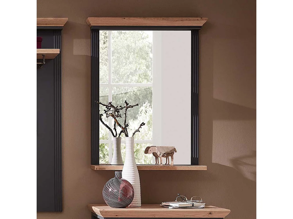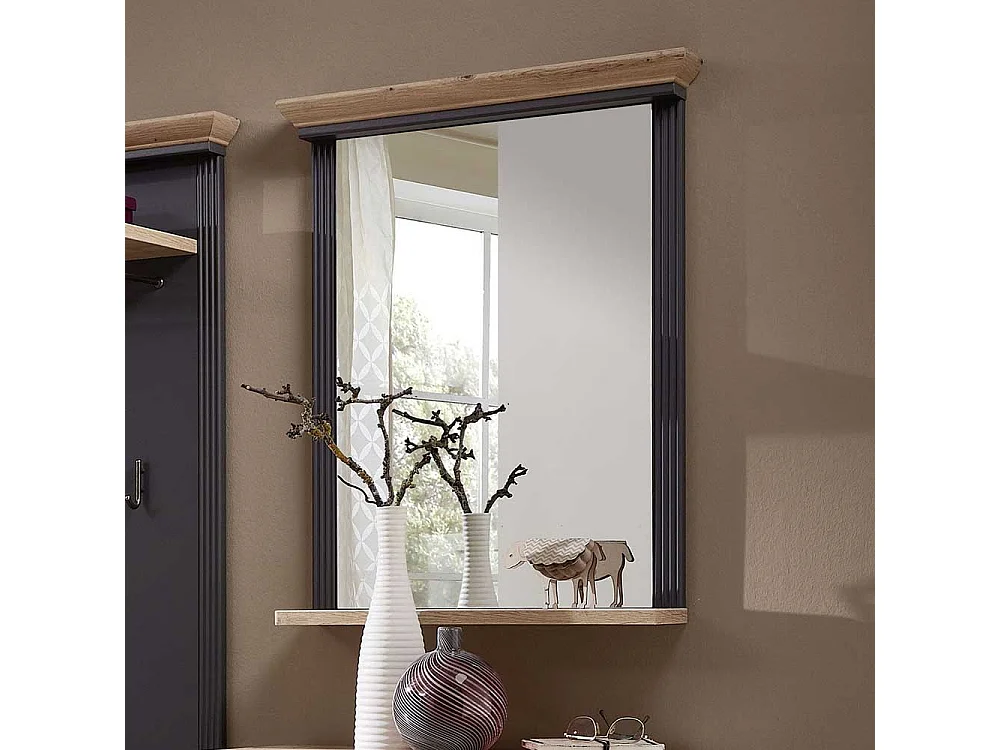 Garderoben Spiegel in Dunkelgrau und Eichefarben Landhausstil