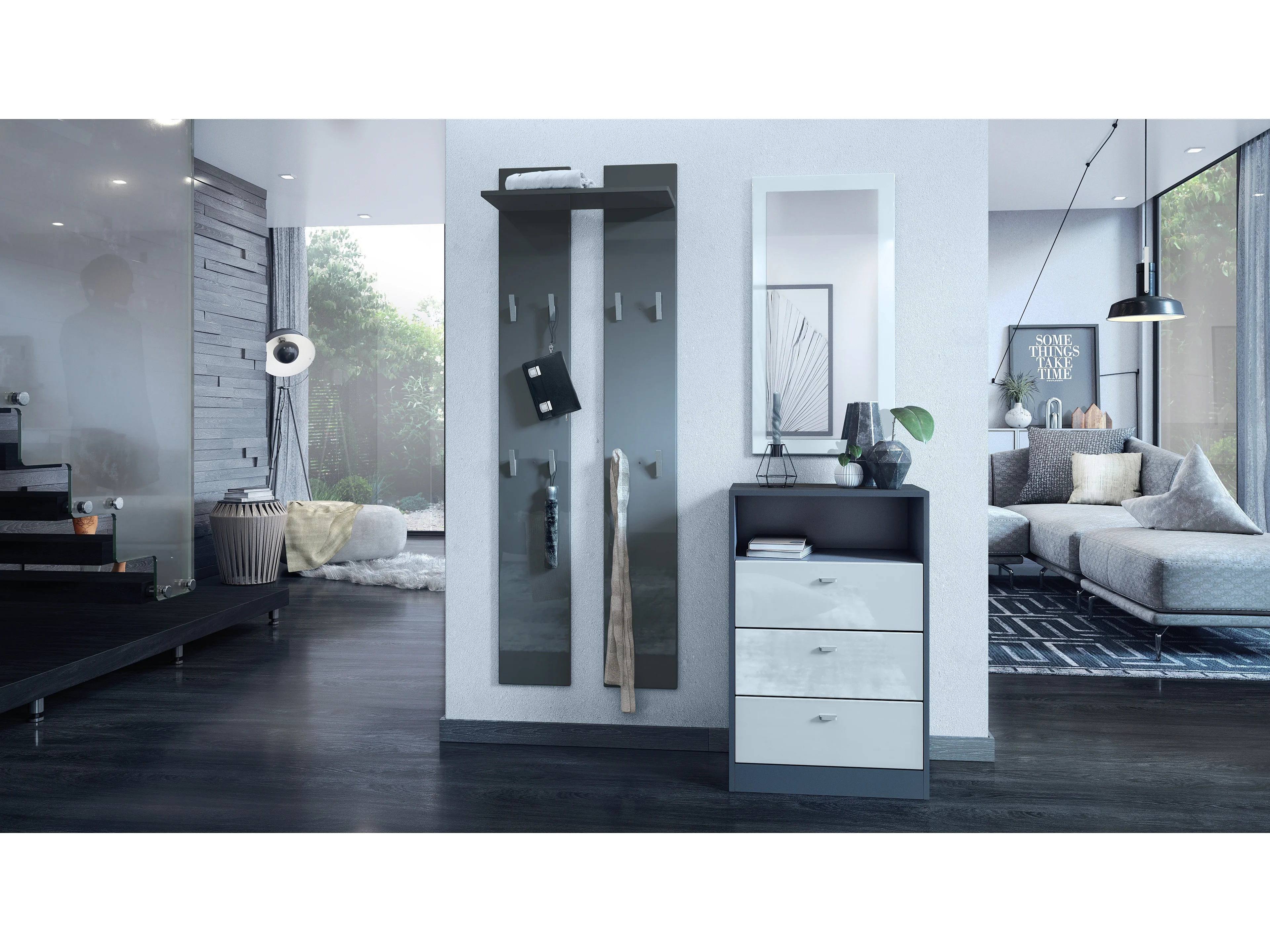 GARDEROBENPANEEL Wandpaneel Grau Hochglanz
