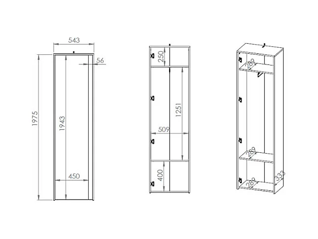 GARDEROBENSCHRANK Hyga Pinie weiß / anthrazit 54 / 34 / 198cm