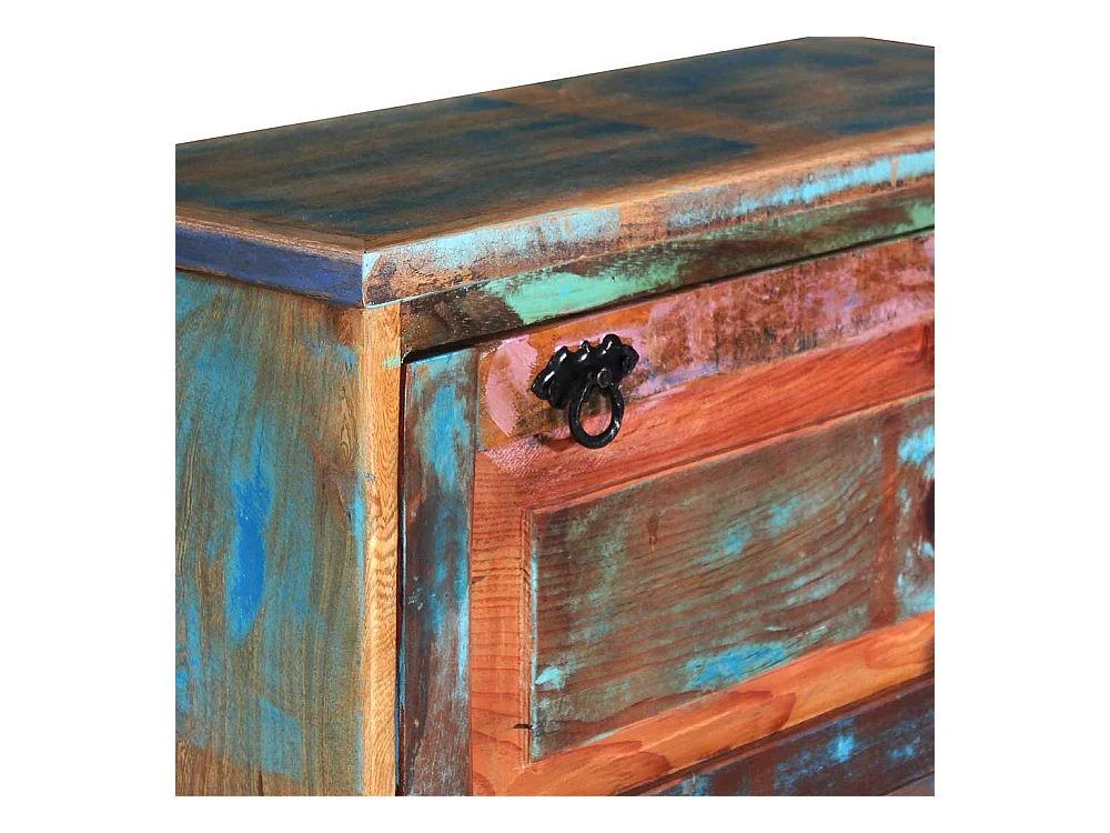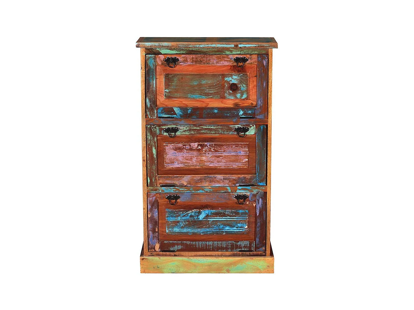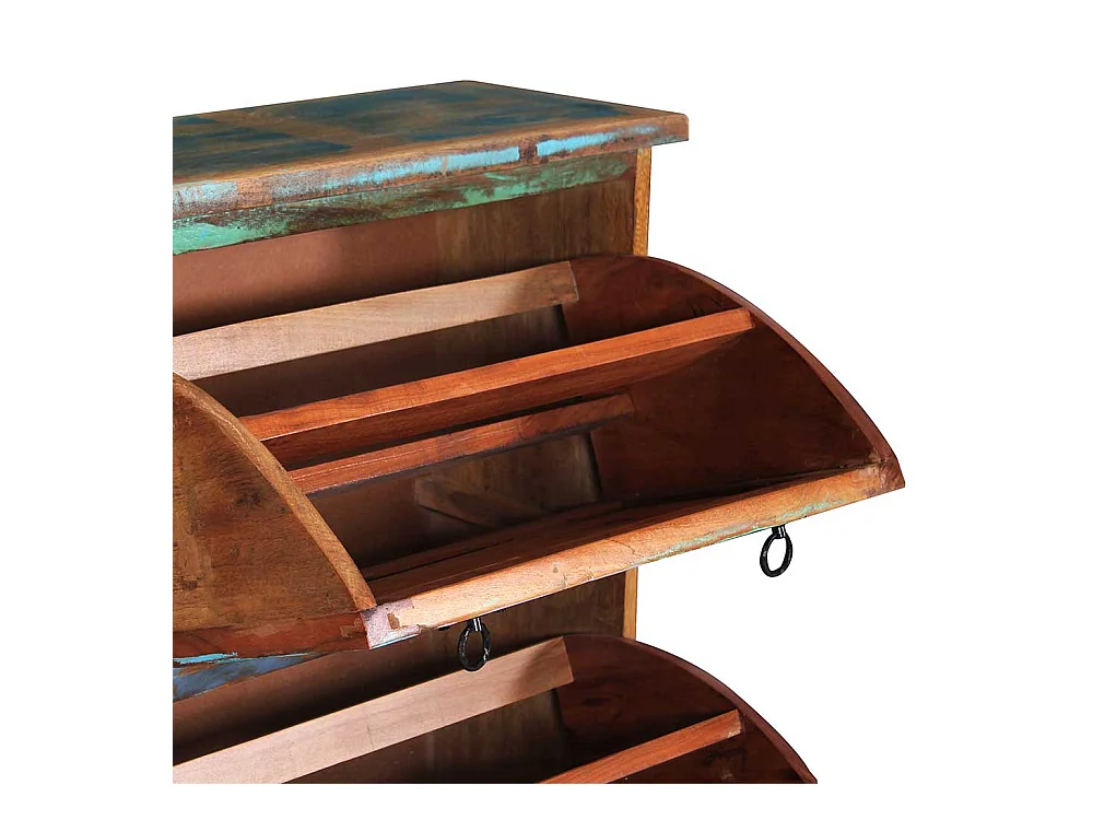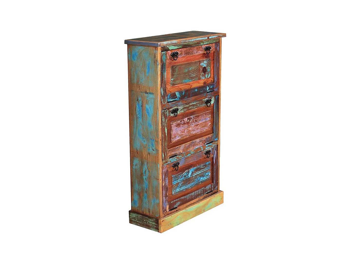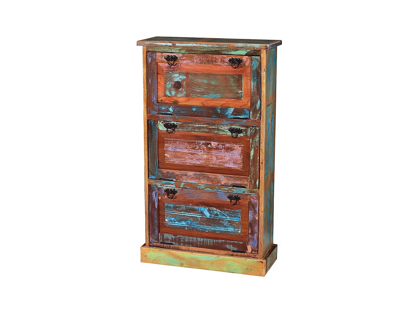 Garderobenschuhschrank aus buntem Recyclingholz drei Schuhklappen