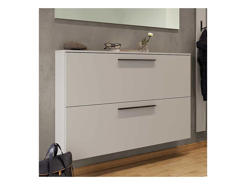 Garderobenschuhschrank in Hellgrau 2 Schuhkörben aus Metall