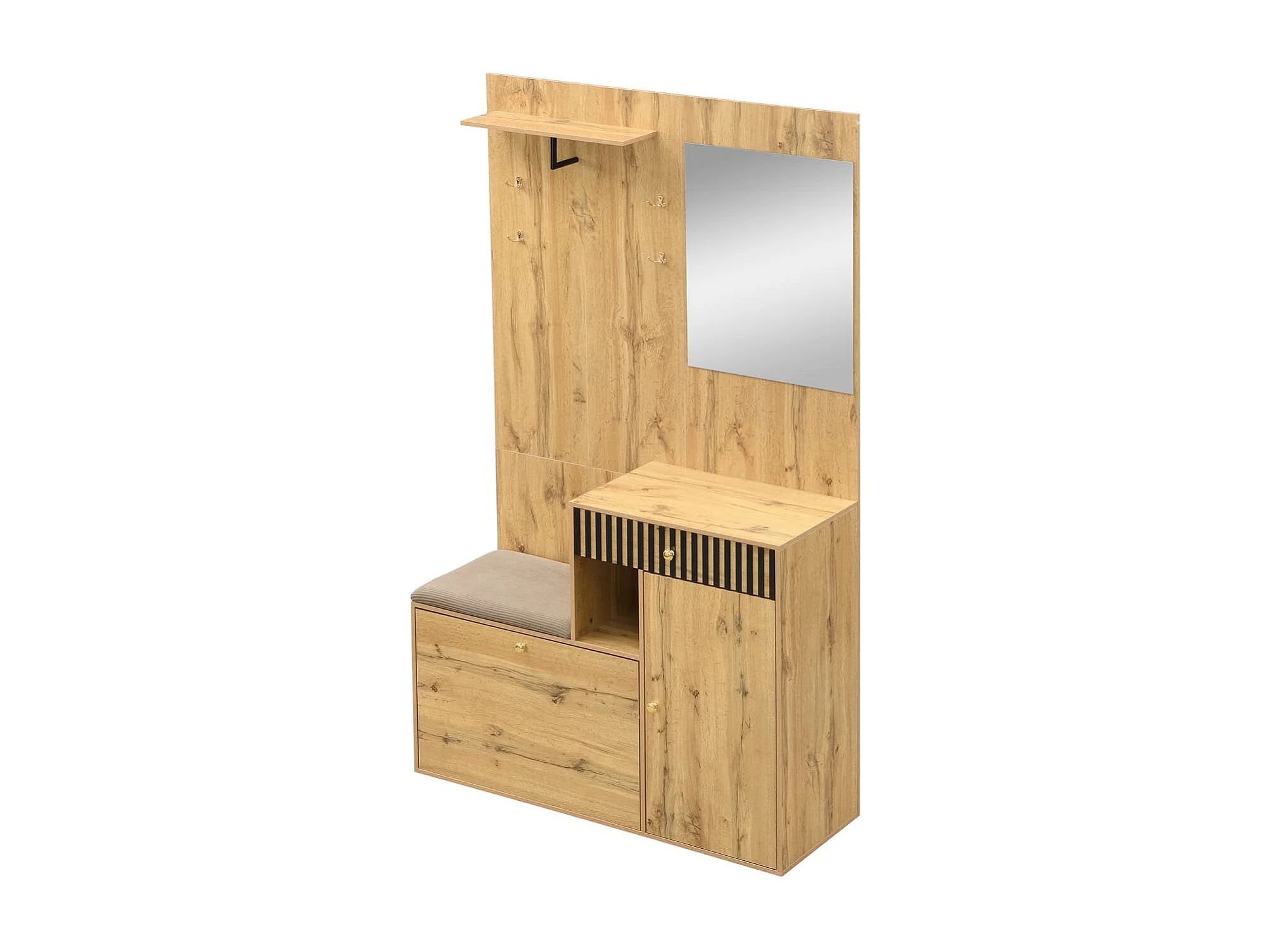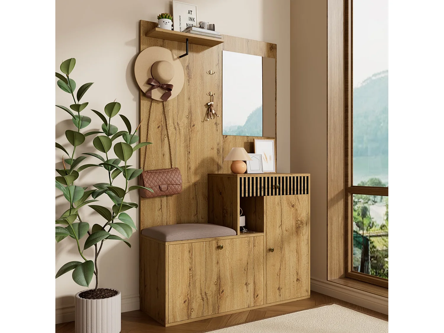 Garderobenset,Kompaktgarderobe,Flurgarderobe mit Spiegel und Polsterkissen,Flurschrank,Wohnwand,Regal,Flur-und Dielengarderobenpaneele,Schuhschrank