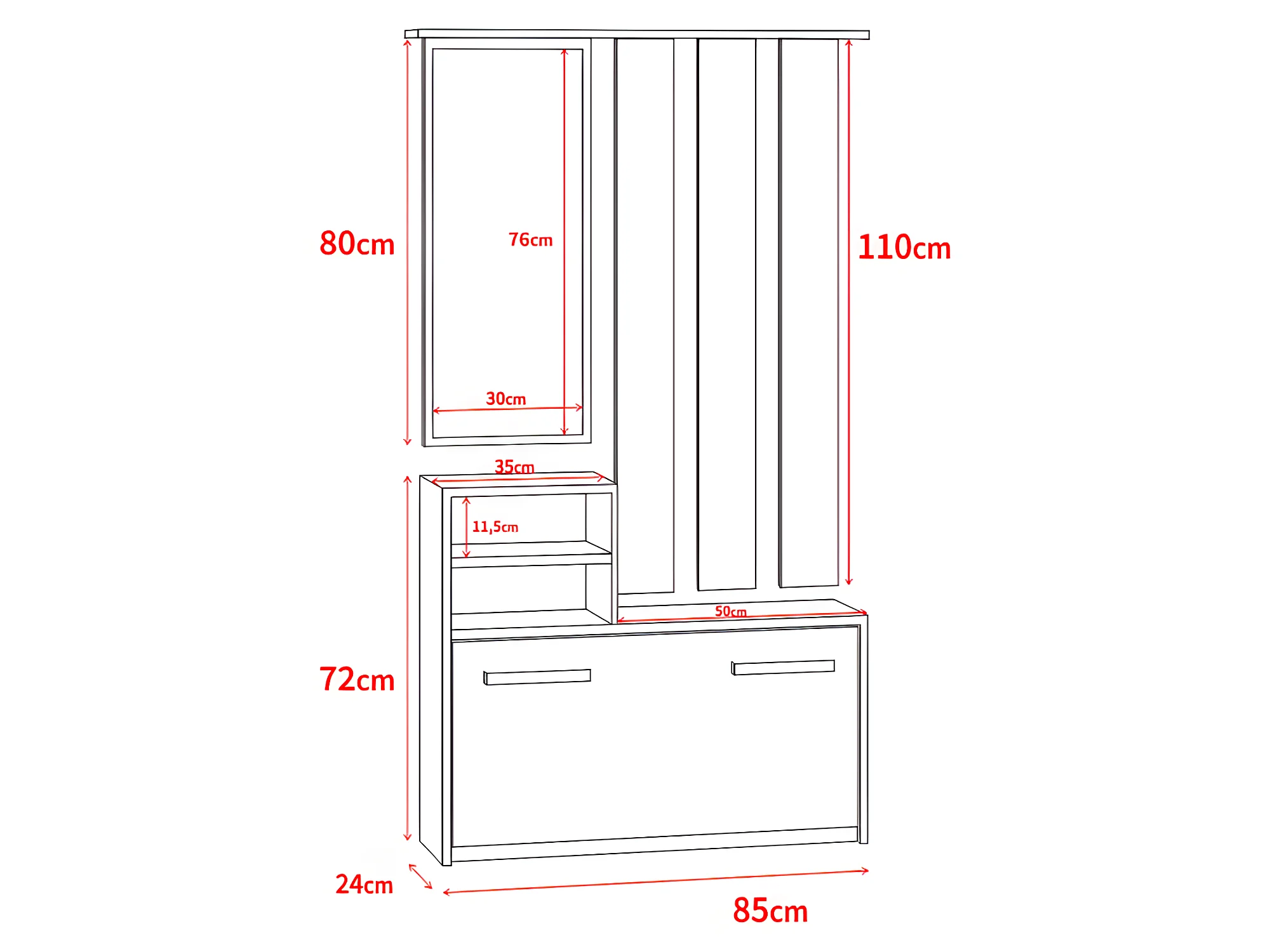 Garderobenset mit Schuhschrank, Spiegel, 6 Kleiderhaken und 2 offenen Fächern (Holzoptik Wotan Eiche) - Yesfir