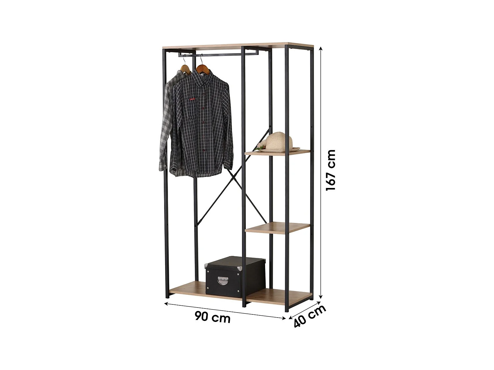 Garderobenständer / offene Garderobe mit 2 Regalen und Kleiderstange, Kollektion HOLBORN – Maße 90x40x167 cm, Farbe Eiche und Schwarz