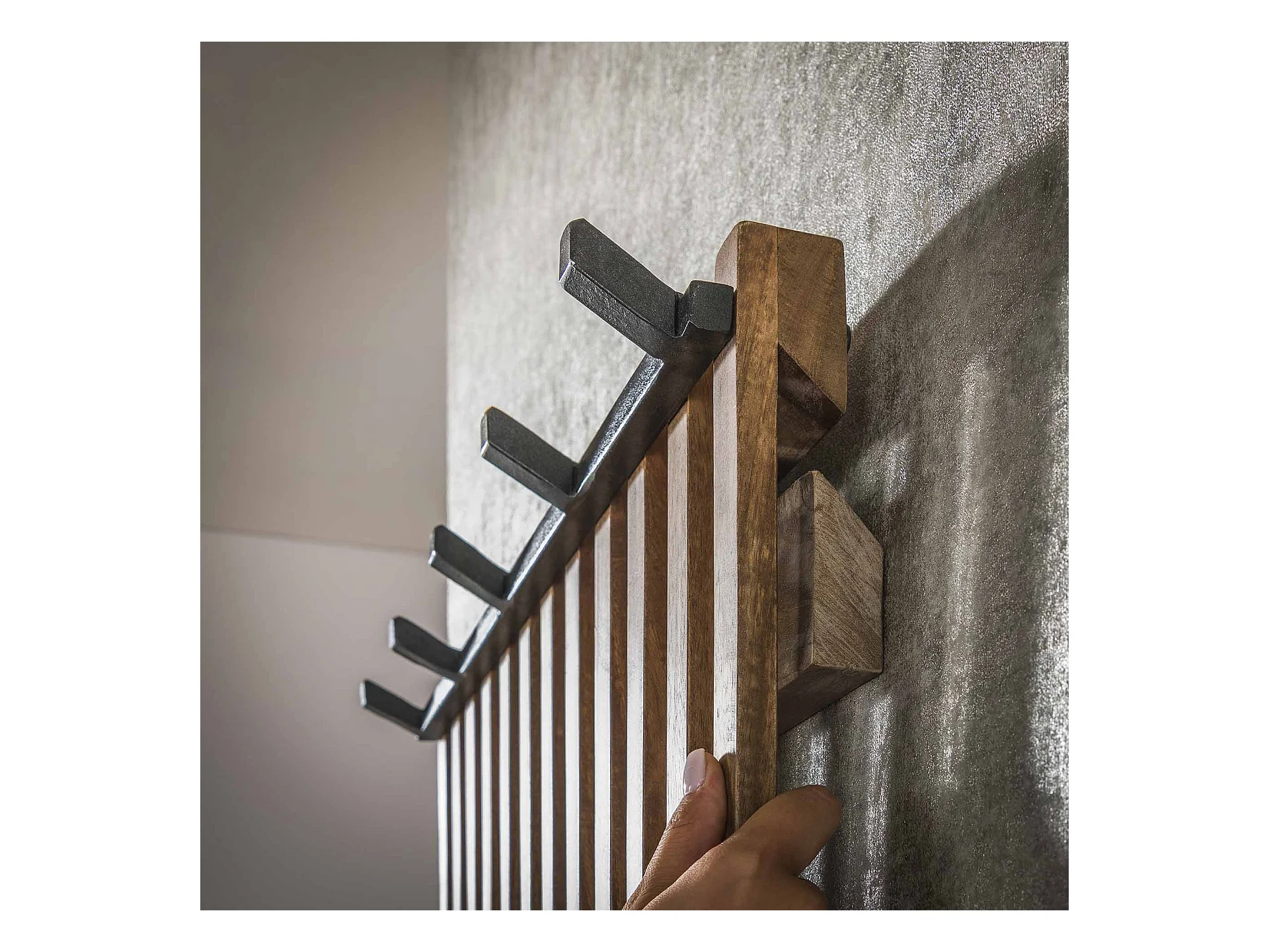Garderobenständer Tweak - 14 Haken - Mangoholz - Sandfarbe
