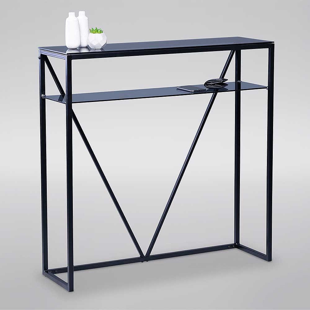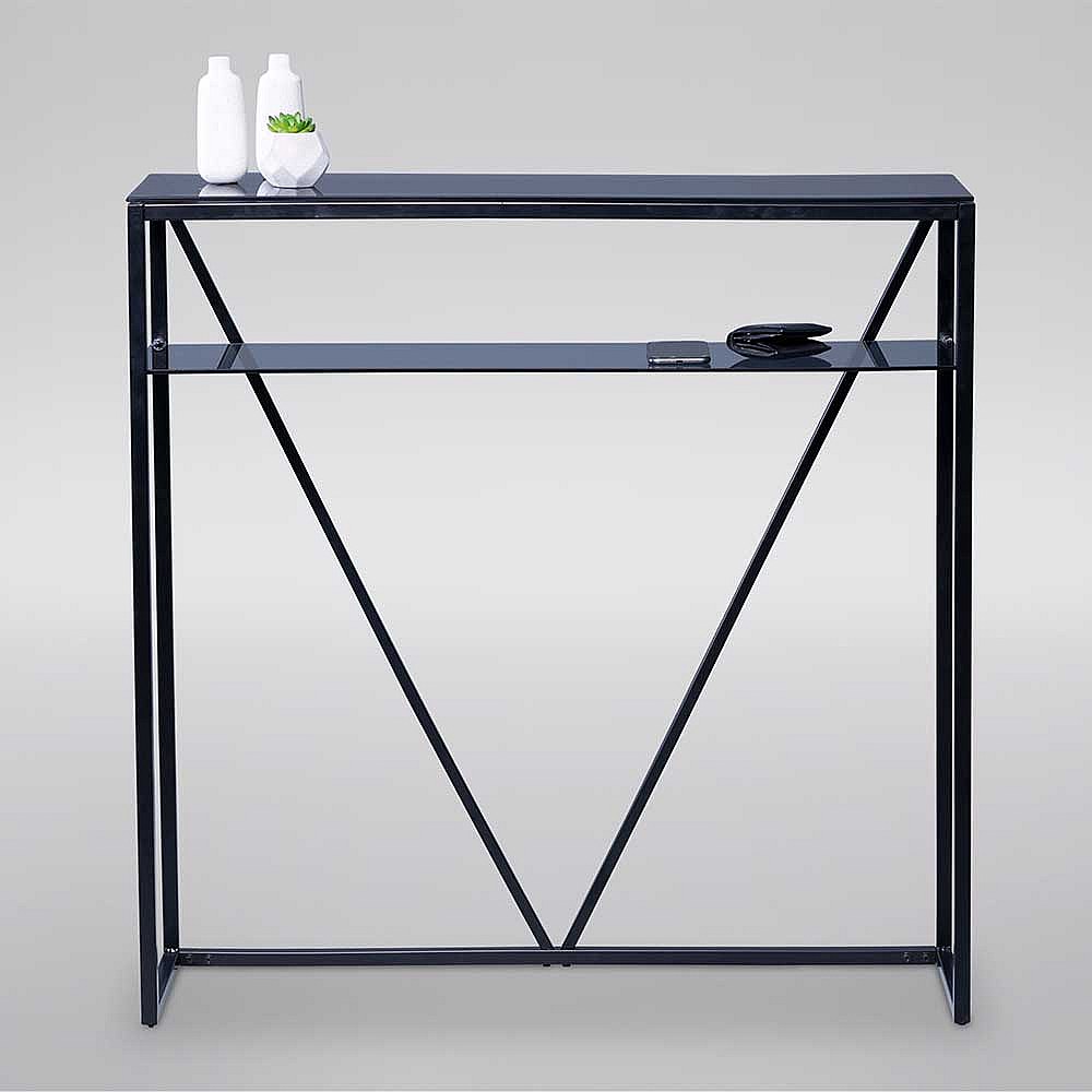 Garderobentisch in Schwarz Sicherheitsglas und Metall