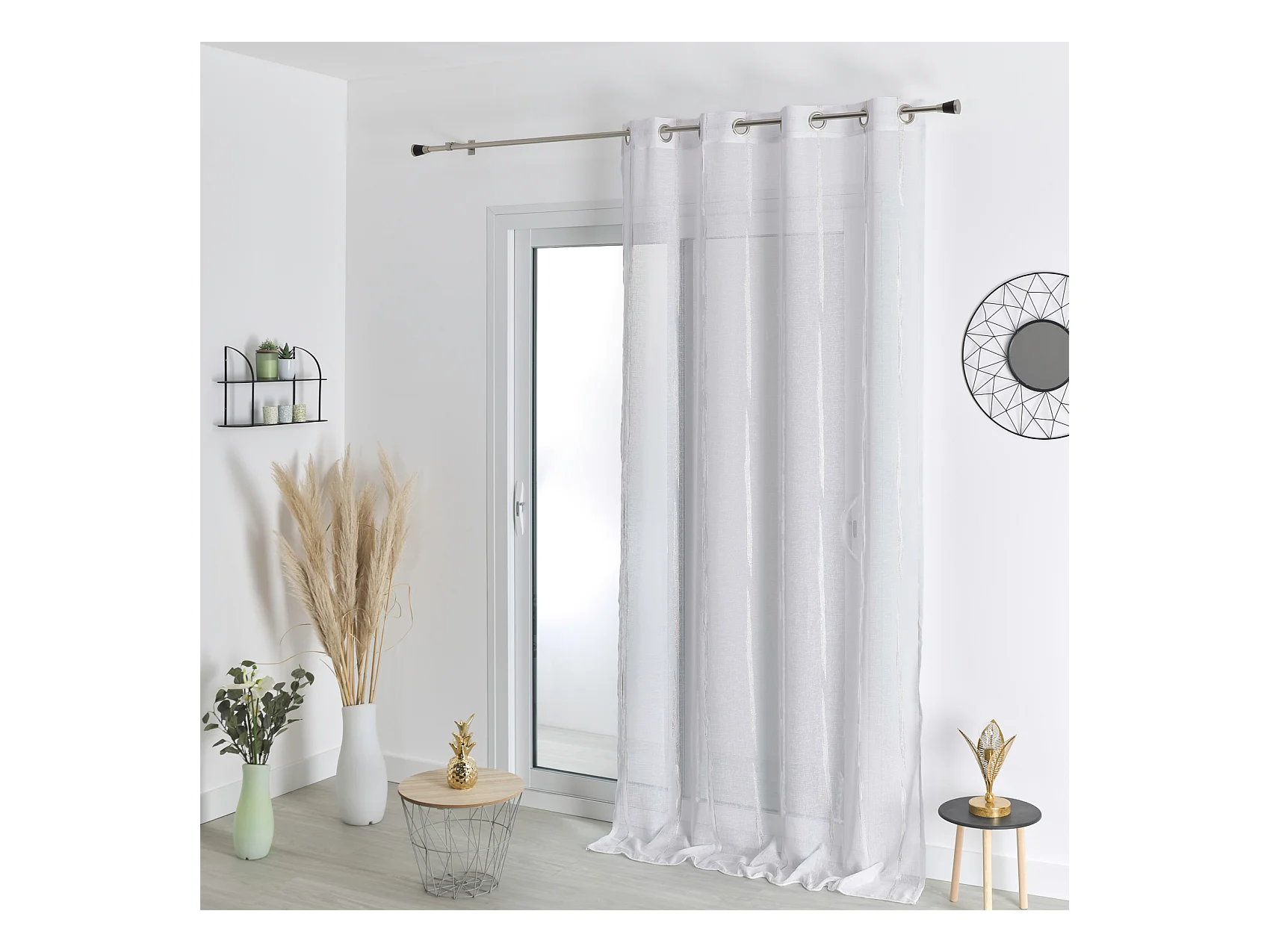Gardine aus bunter Etamine mit Streifen