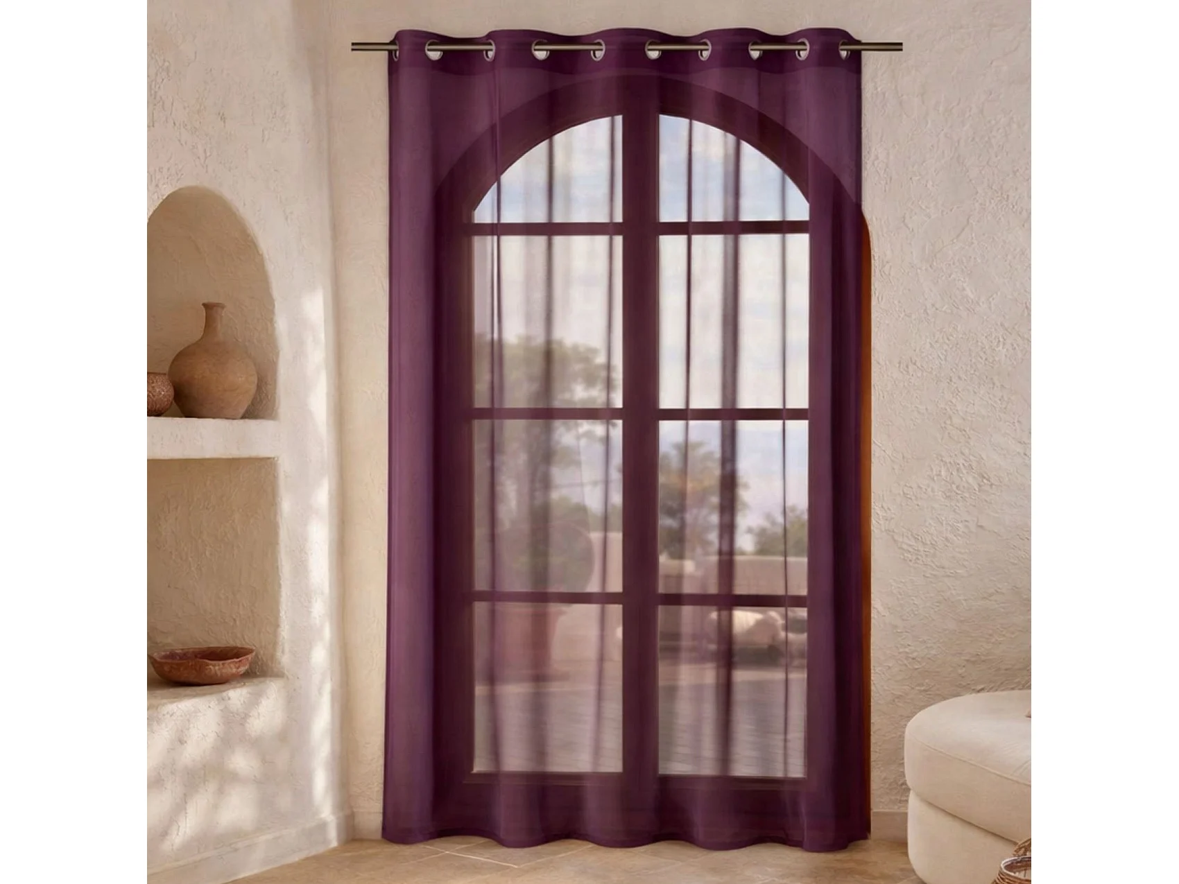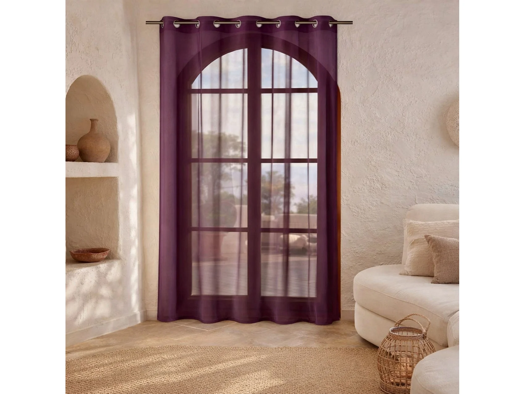 Gardine aus Etamine einfarbig mit Ösen