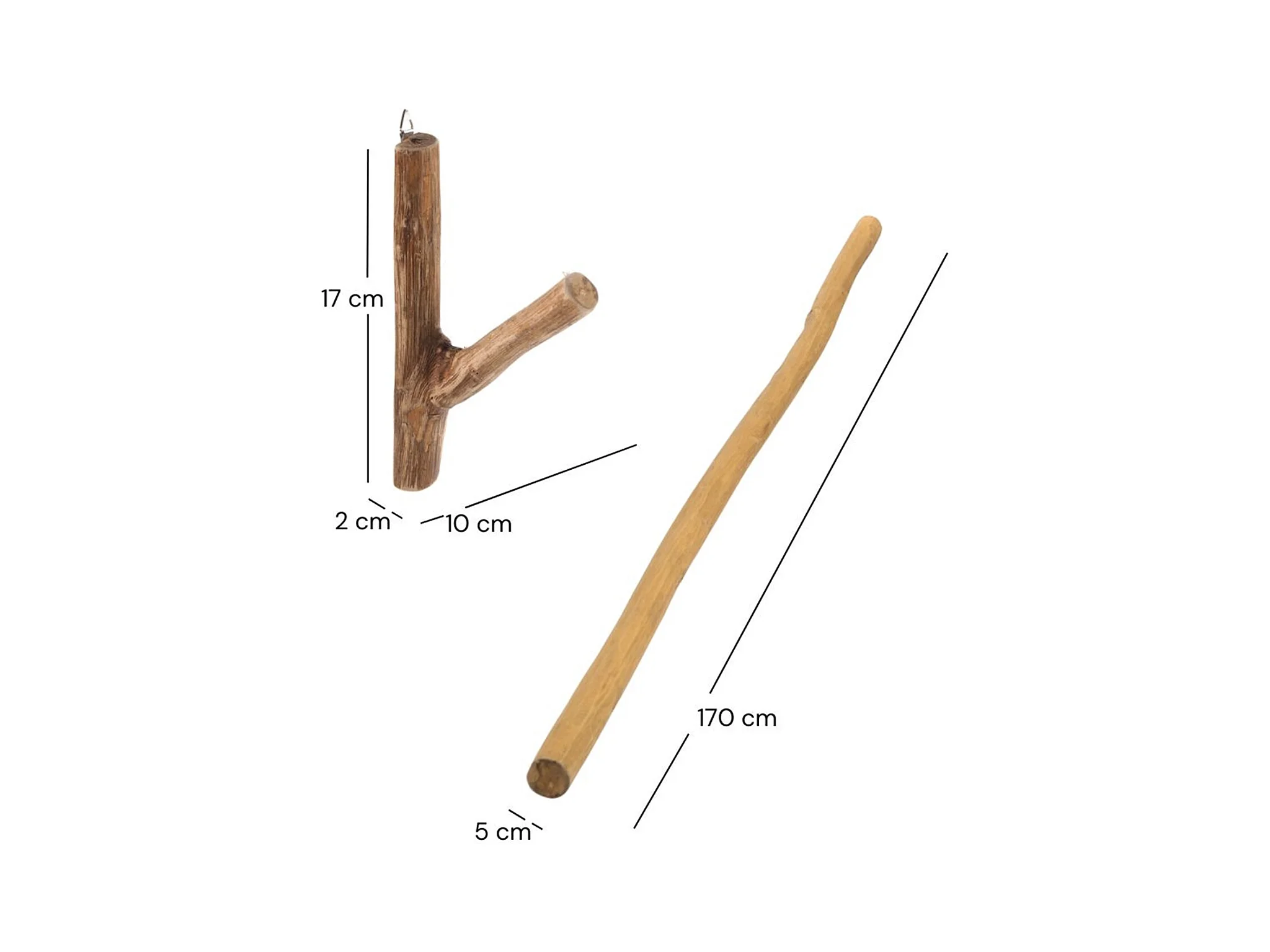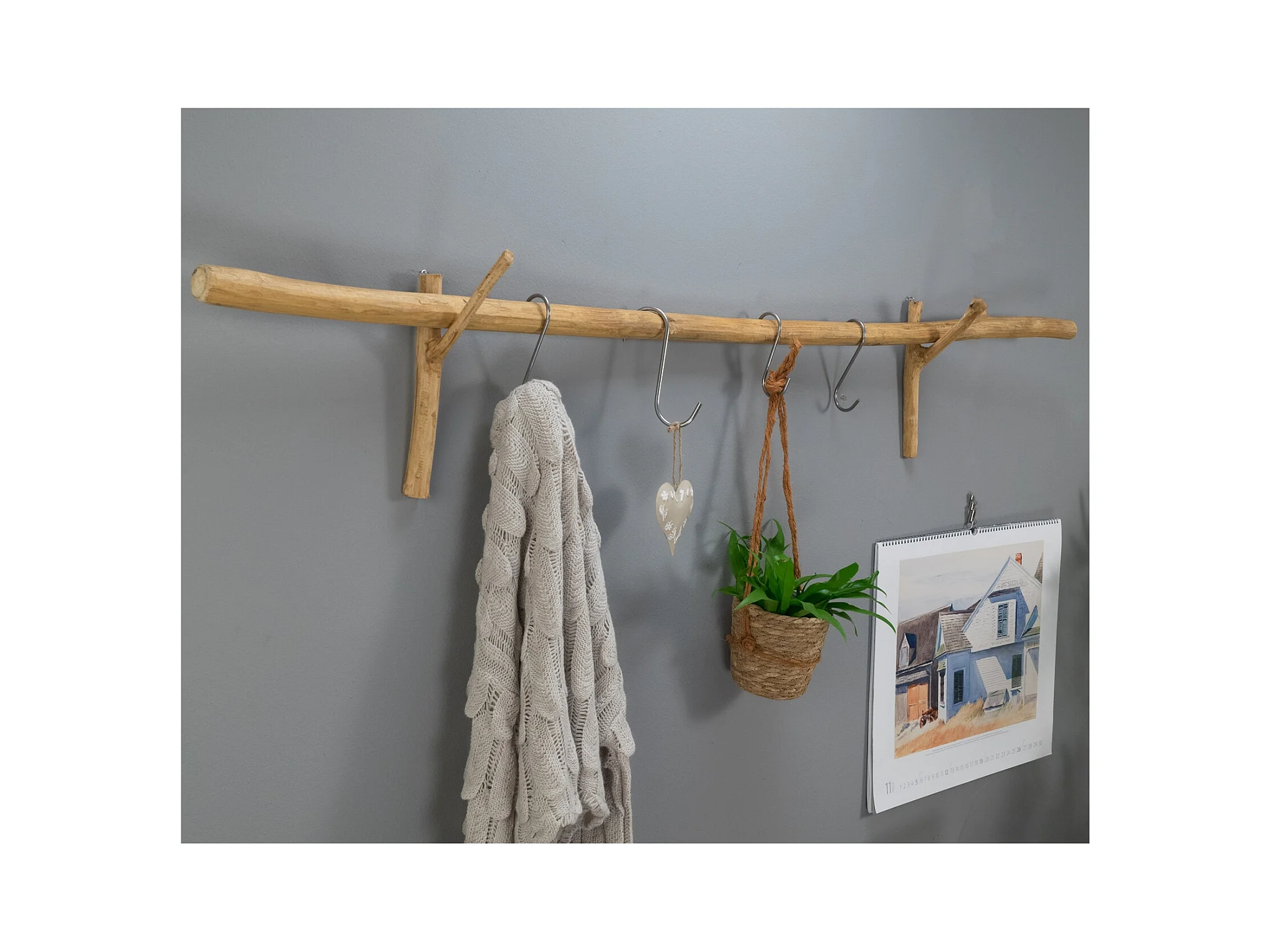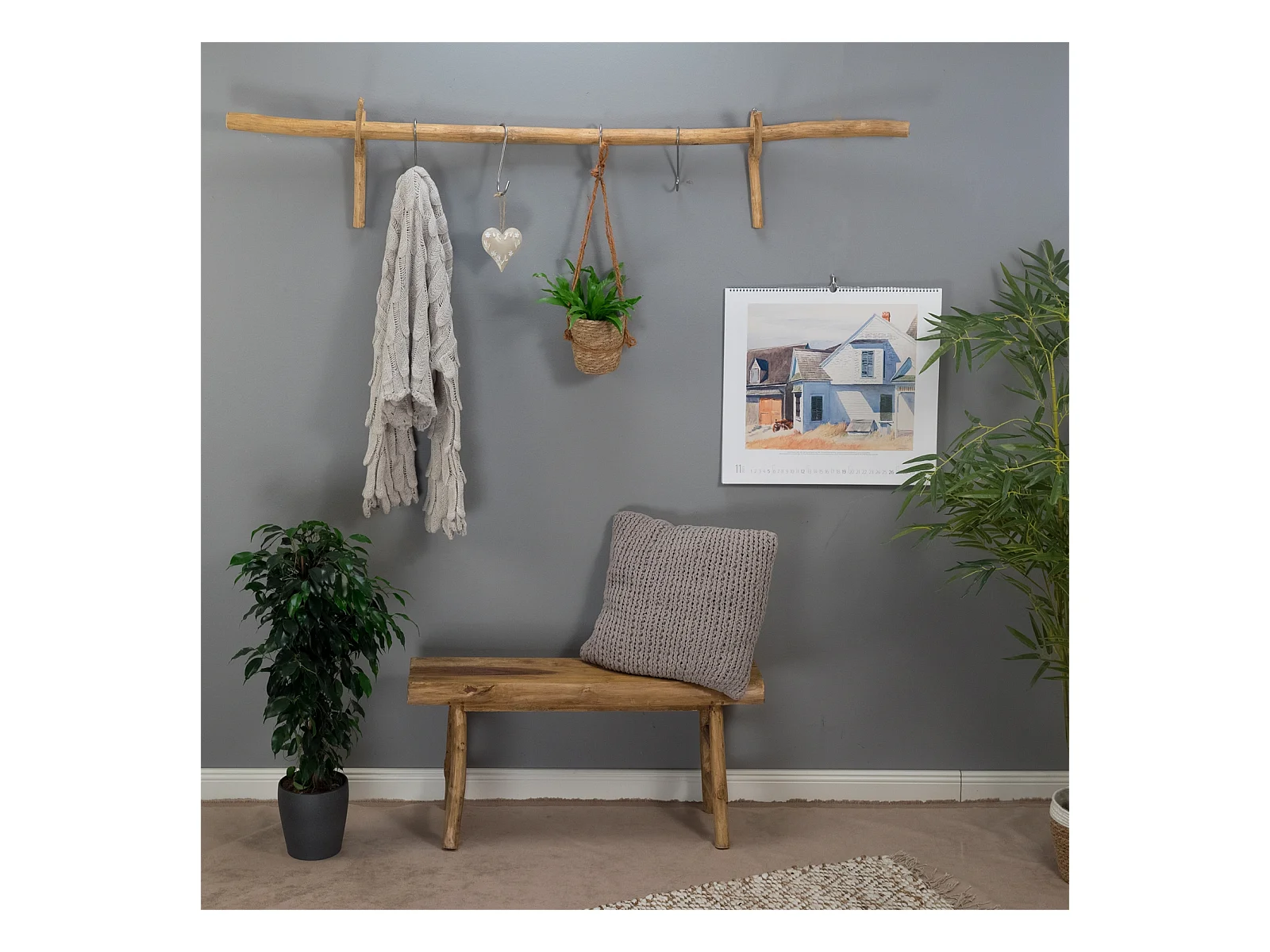 GARDINENSTANGE Vara 170 cm, Teak Massivholz mit Ast-Wandhaken