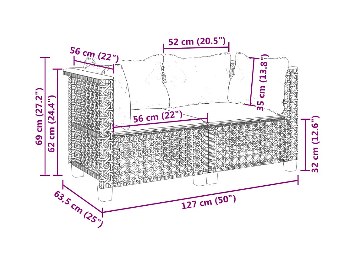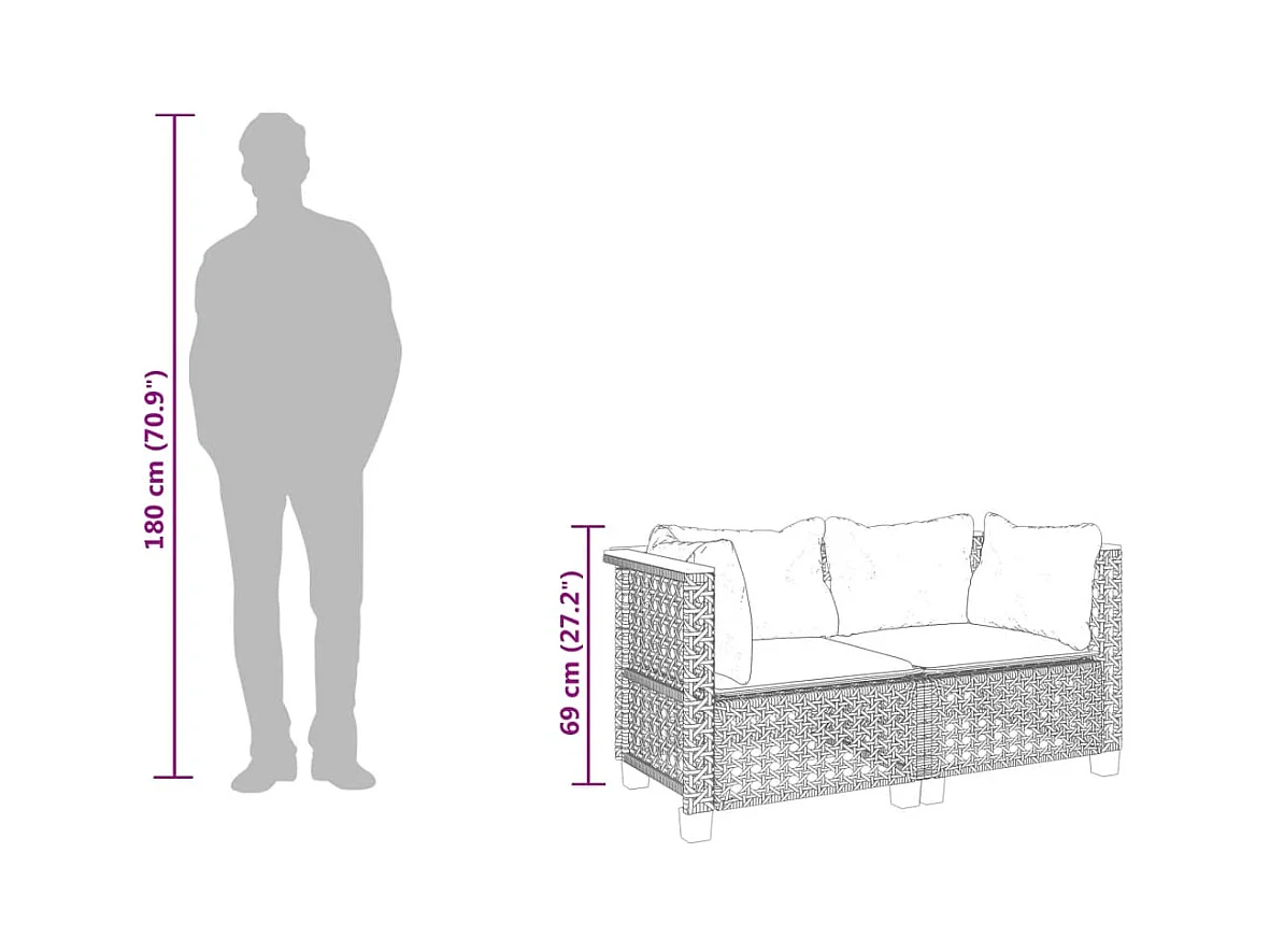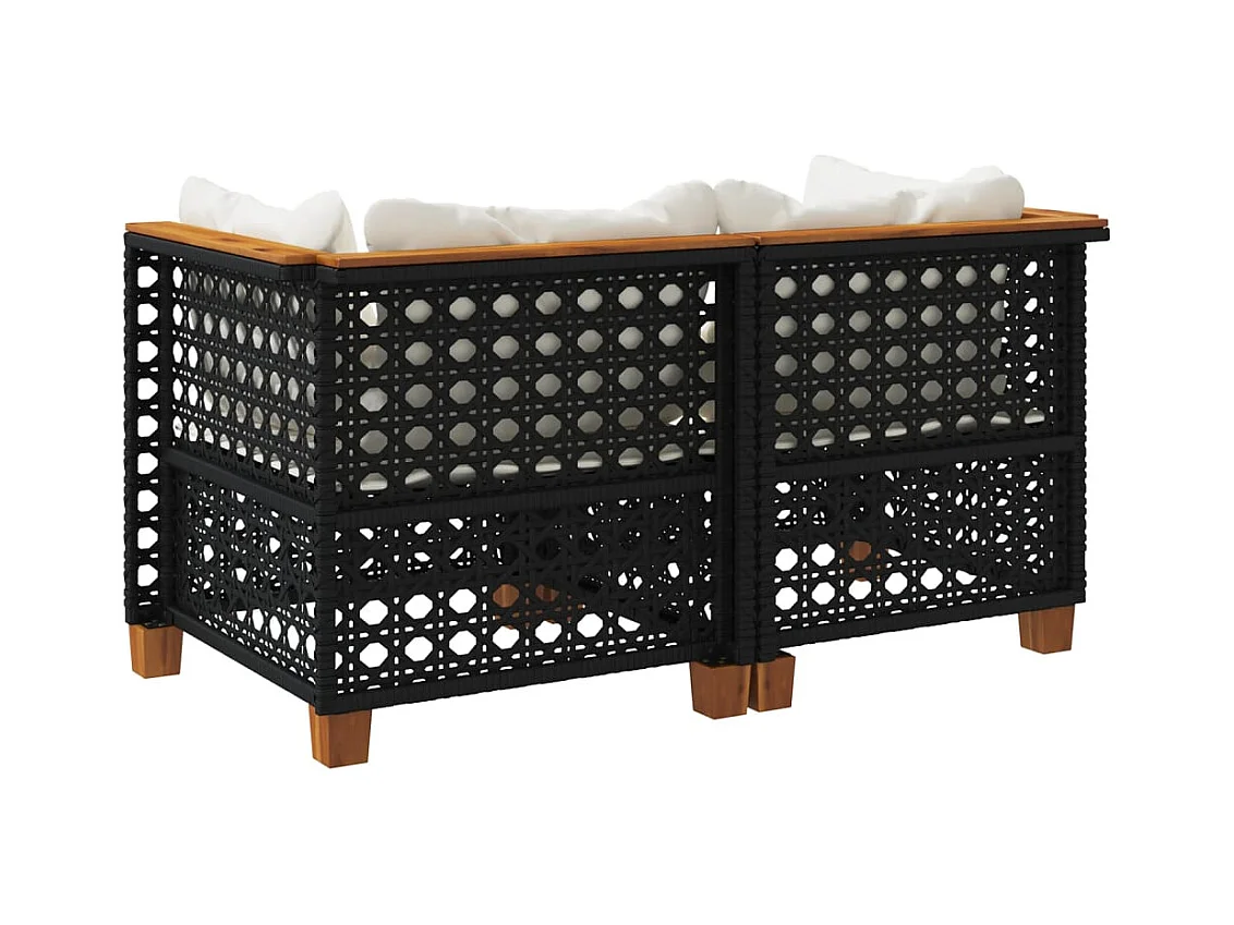 Garten-Ecksofas mit Kissen 2 Stk. Schwarz Poly Rattan