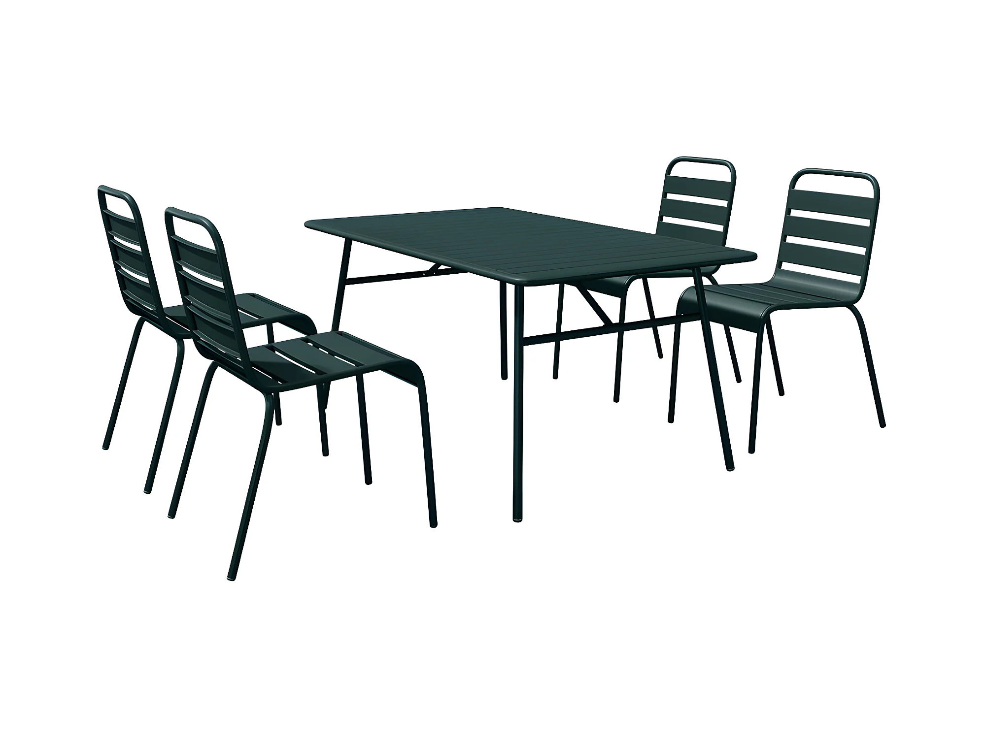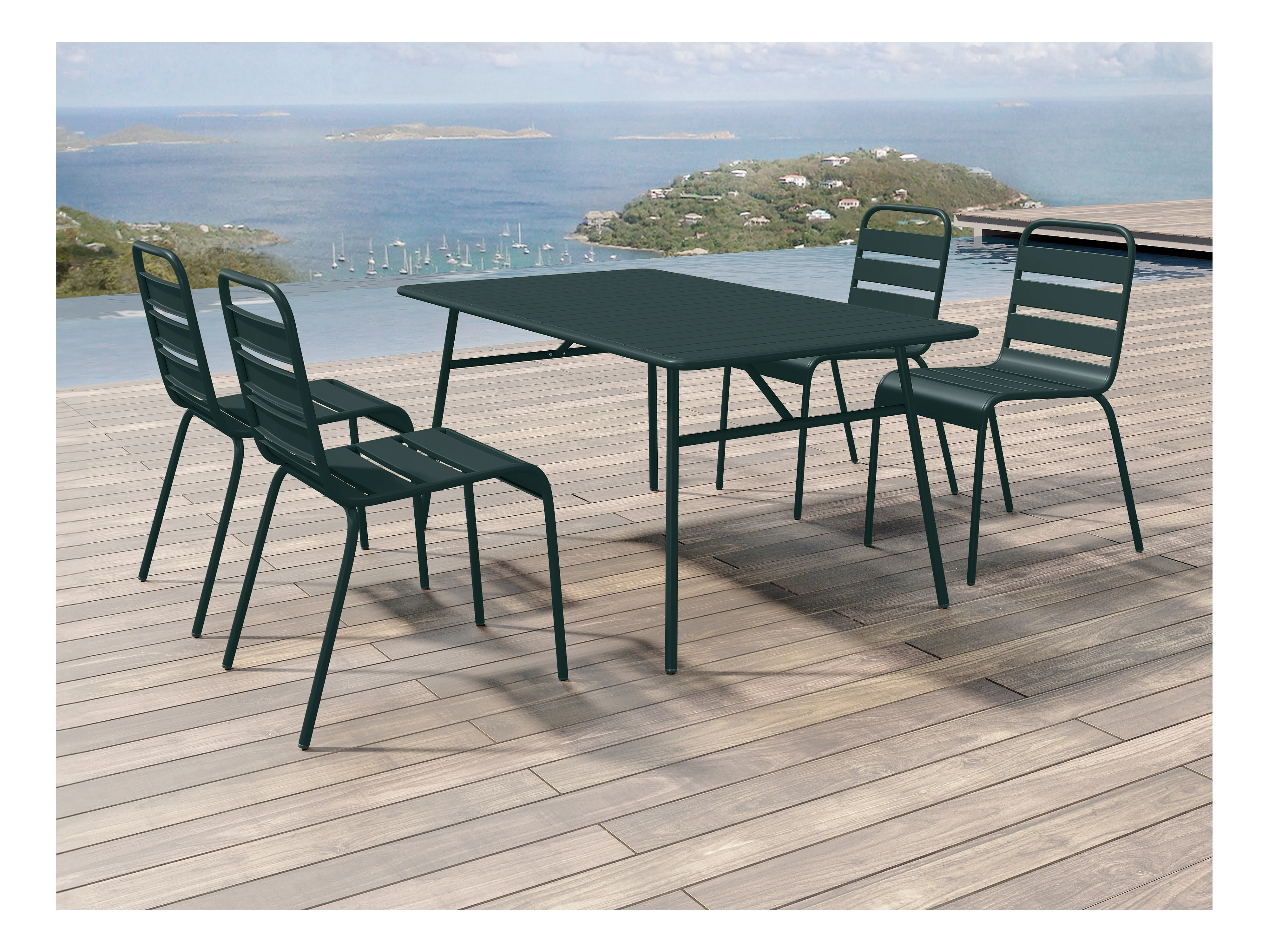 Garten-Essgruppe: Tisch L. 160 cm + 4 stapelbare Stühle - Metall - Tannengrün - MIRMANDE von MYLIA
