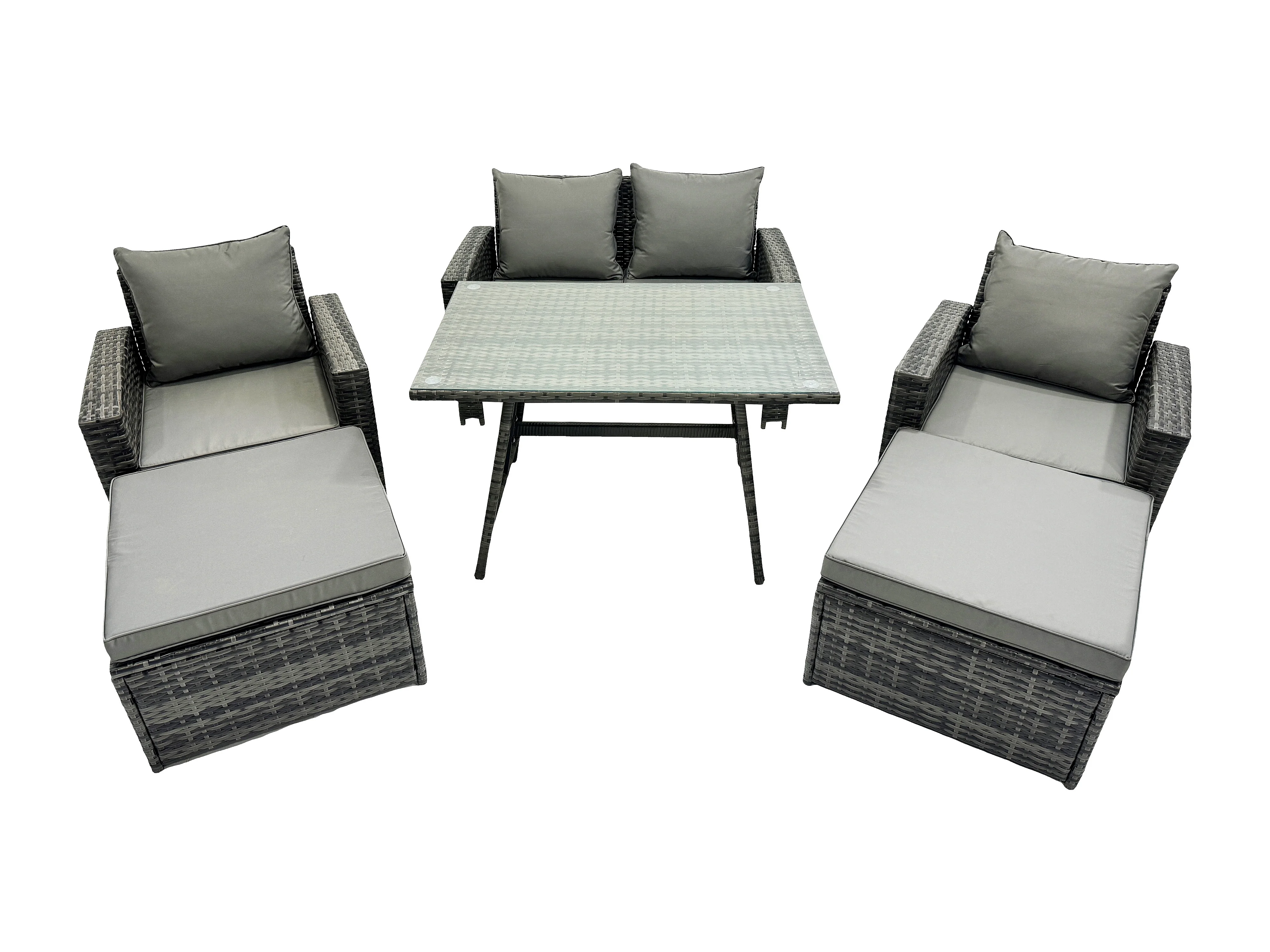 Garten Esstisch Set Polyrattan Outdoor Möbel Sofa mit Rechteckiger Esstisch Doppelsitz Sofa 2 hohen Hockern 2 Sesseln Dunkelgrau Gemischt