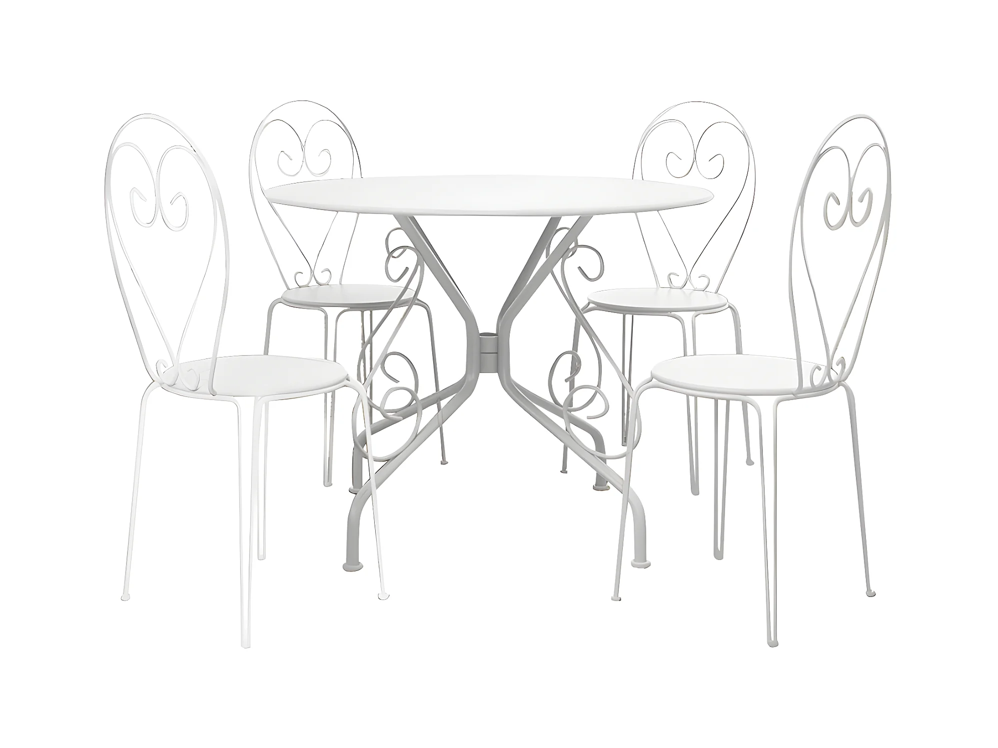 Garten-Essgruppe: Tisch D. 120 cm + 4 stapelbare Stühle - Metall in Eisenoptik - Weiß - GUERMANTES von MYLIA