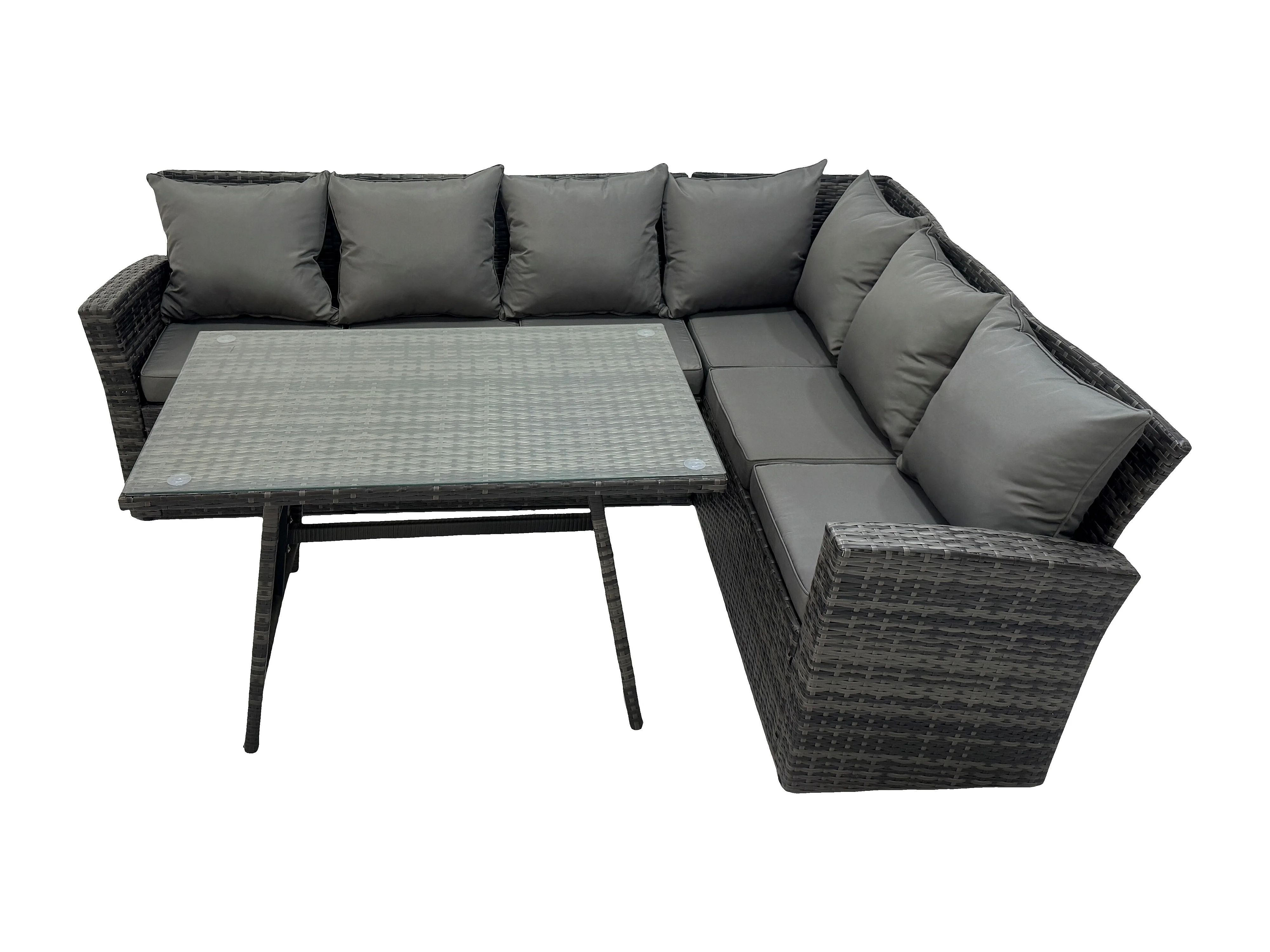 Garten Lounge Set Polyrattan Gartenmöbel Set Rechteckiger Esstisch mit Temper Glass Dunkelgrau Gemischt